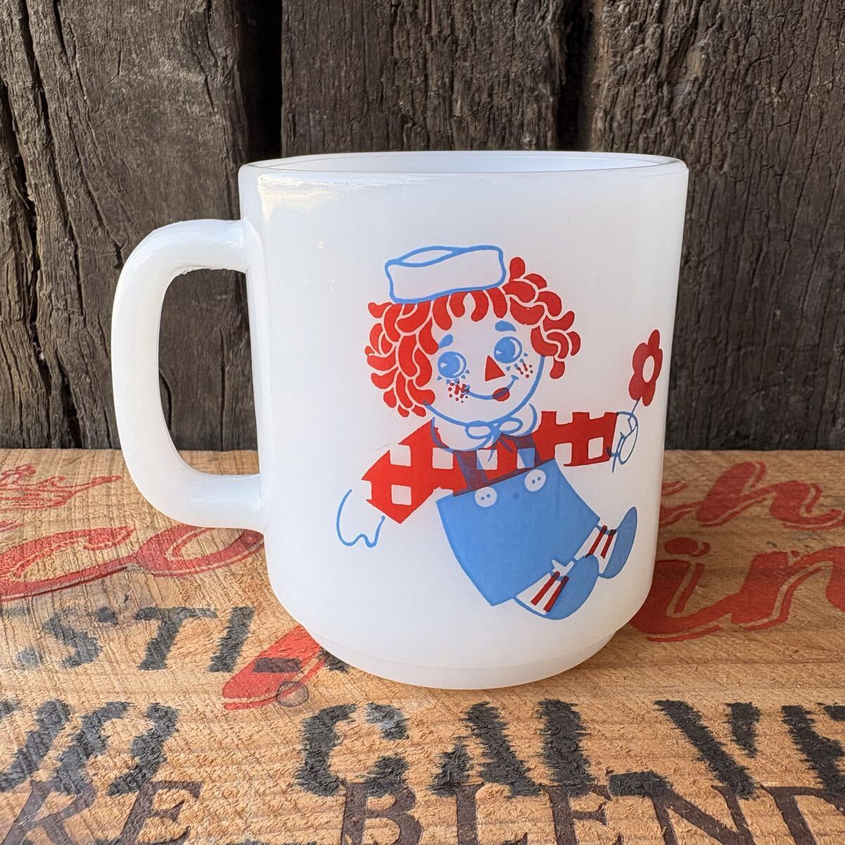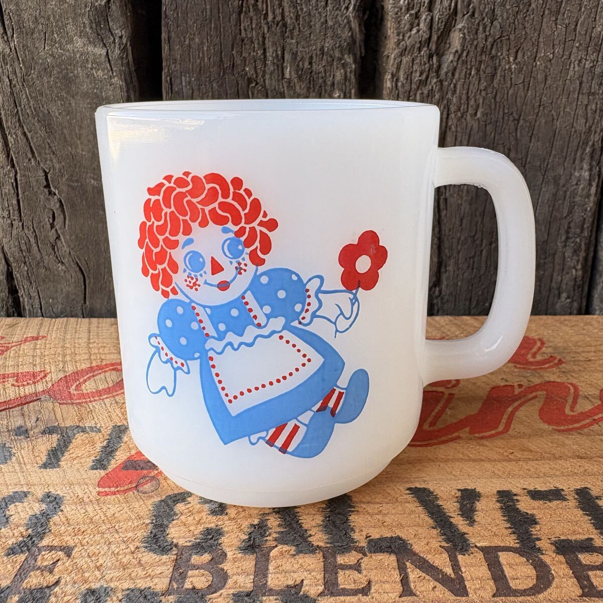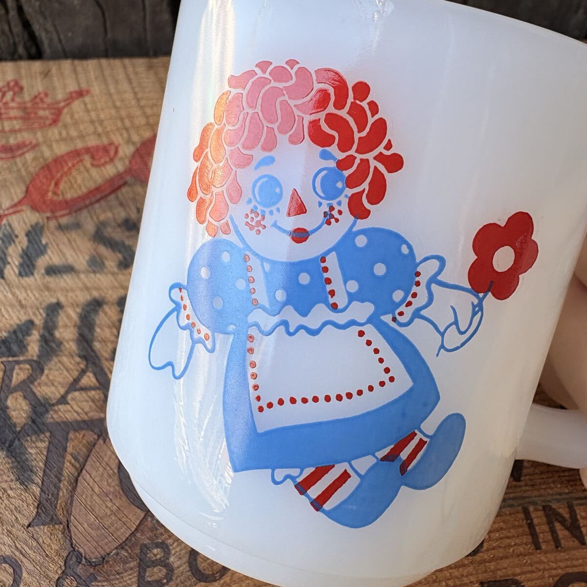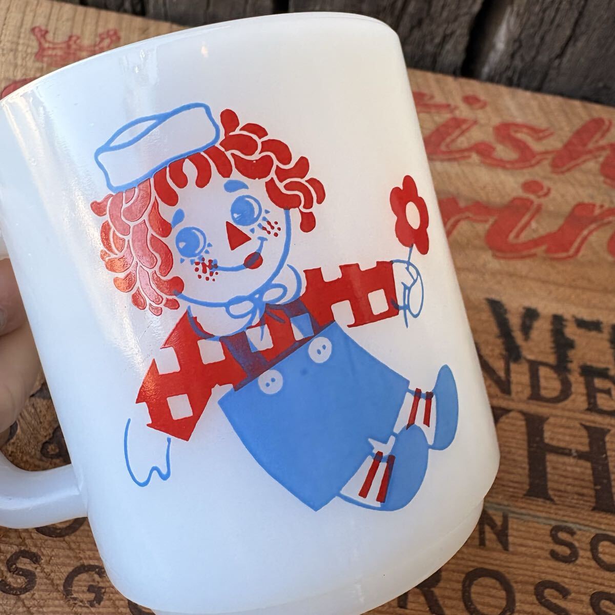 【USA vintage】GLASBAKE mug グラスベイク マグカップ ミルクガラス ラガディアン&アンディ アメリカビンテージ