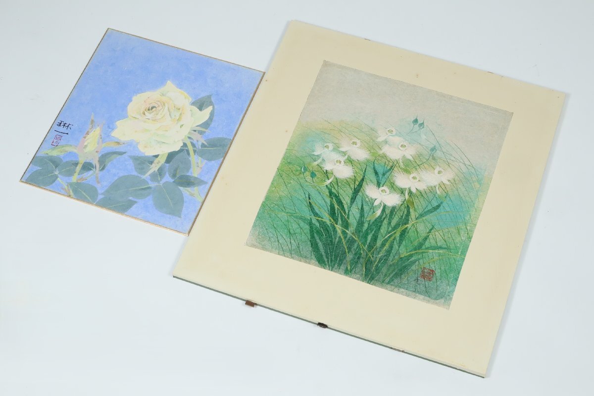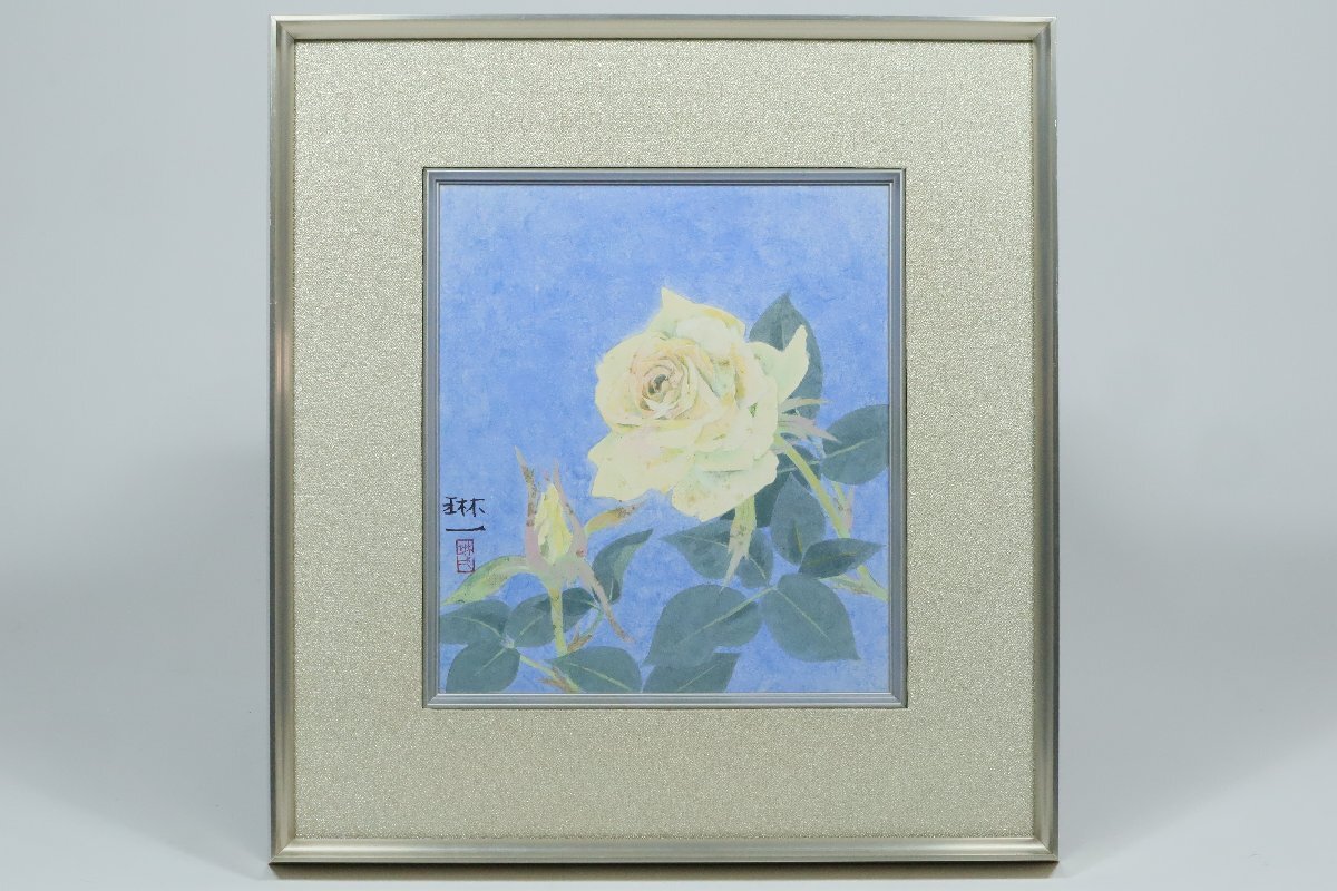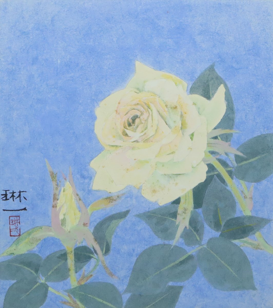 ・間瀬琳一「薔薇」色紙絵 額装品 日本画 100 | ||||||||||