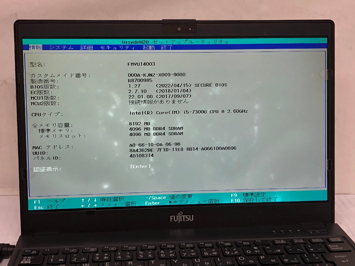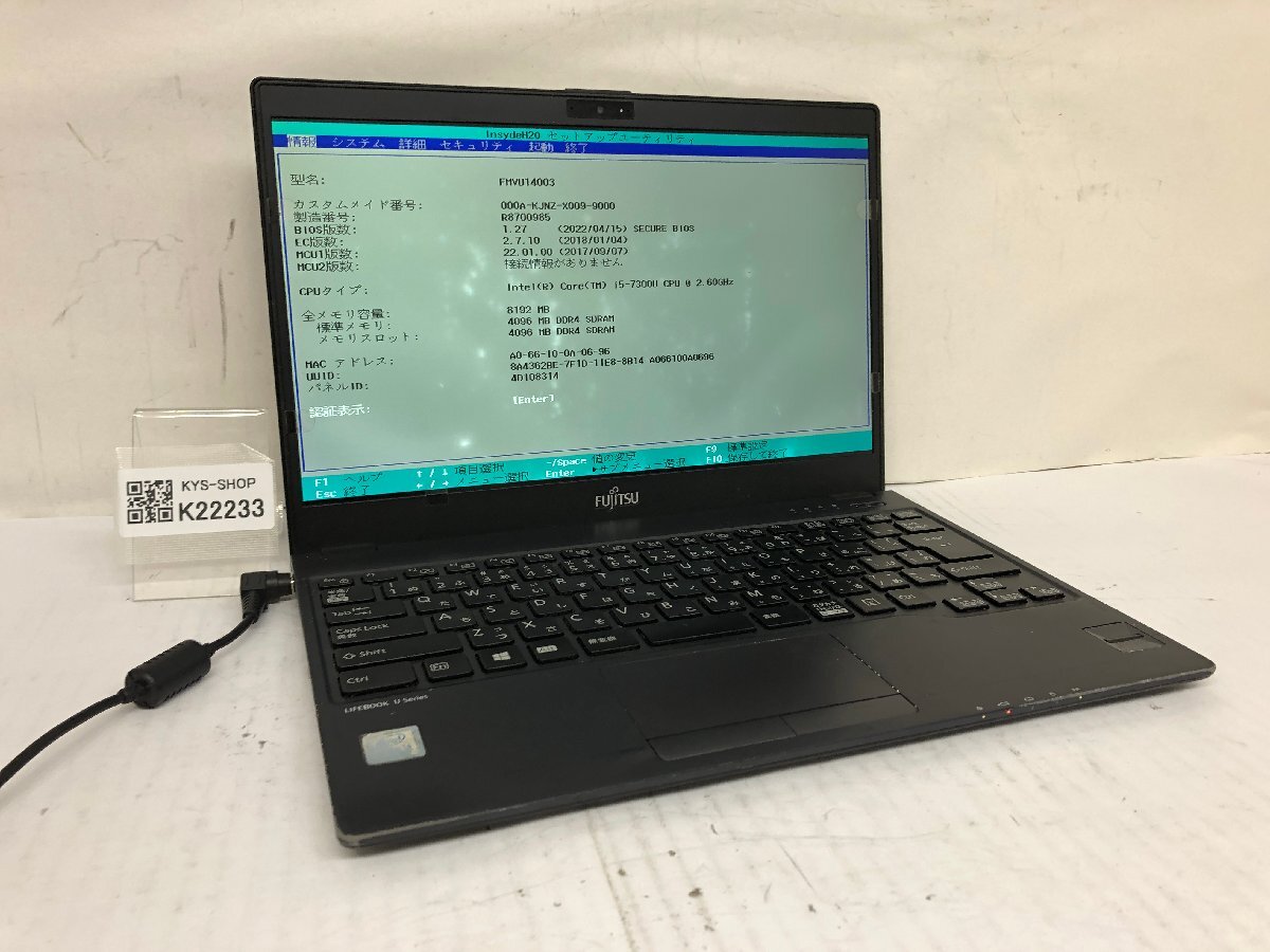 ジャンク/ FUJITSU FMVU14003 LIFEBOOK U938/S Intel Core i5-7300U メモリ8.19GB ストレージ無し 【K22233】