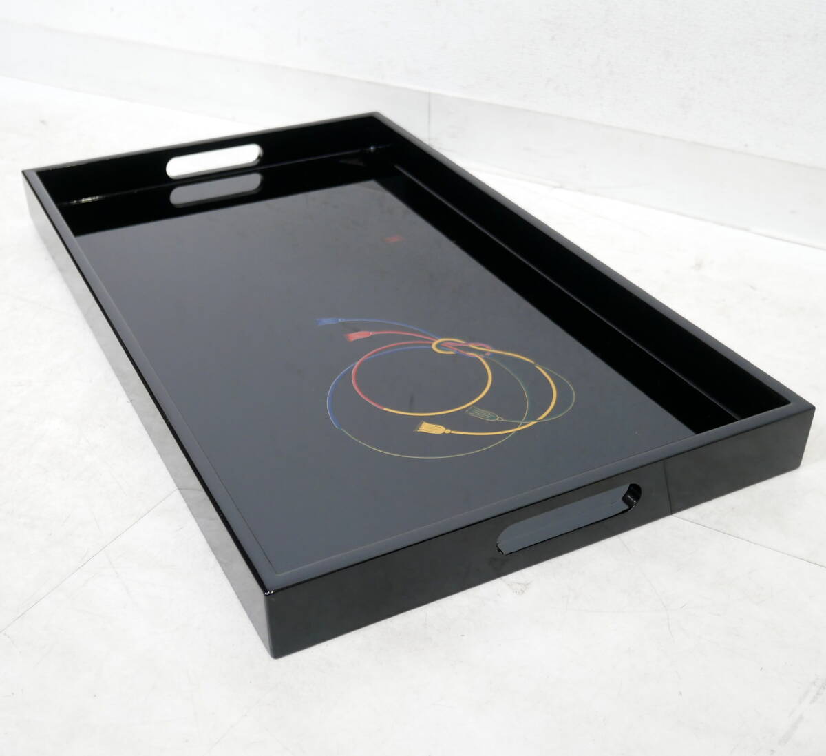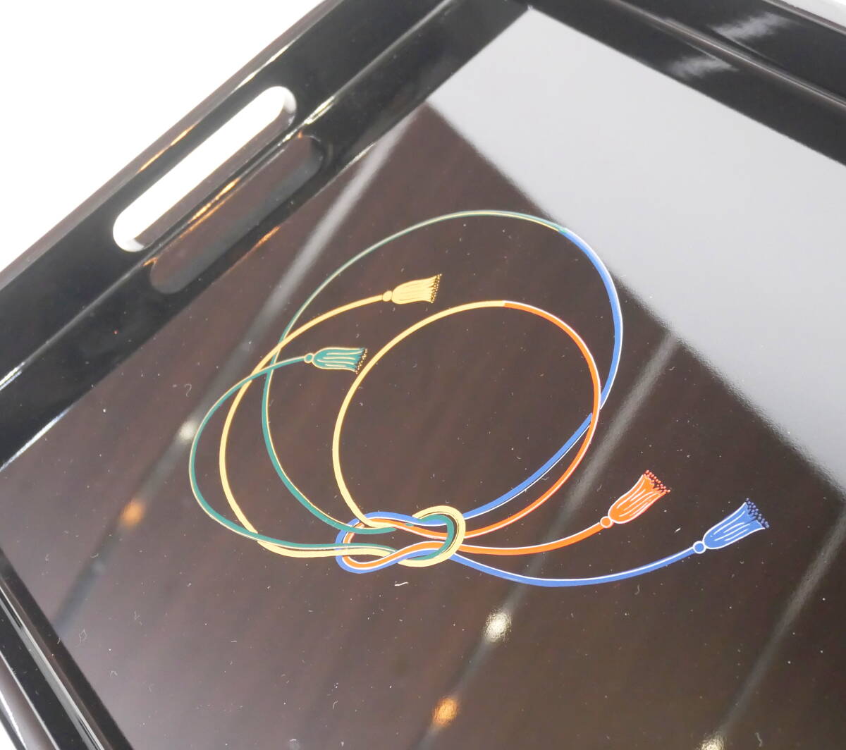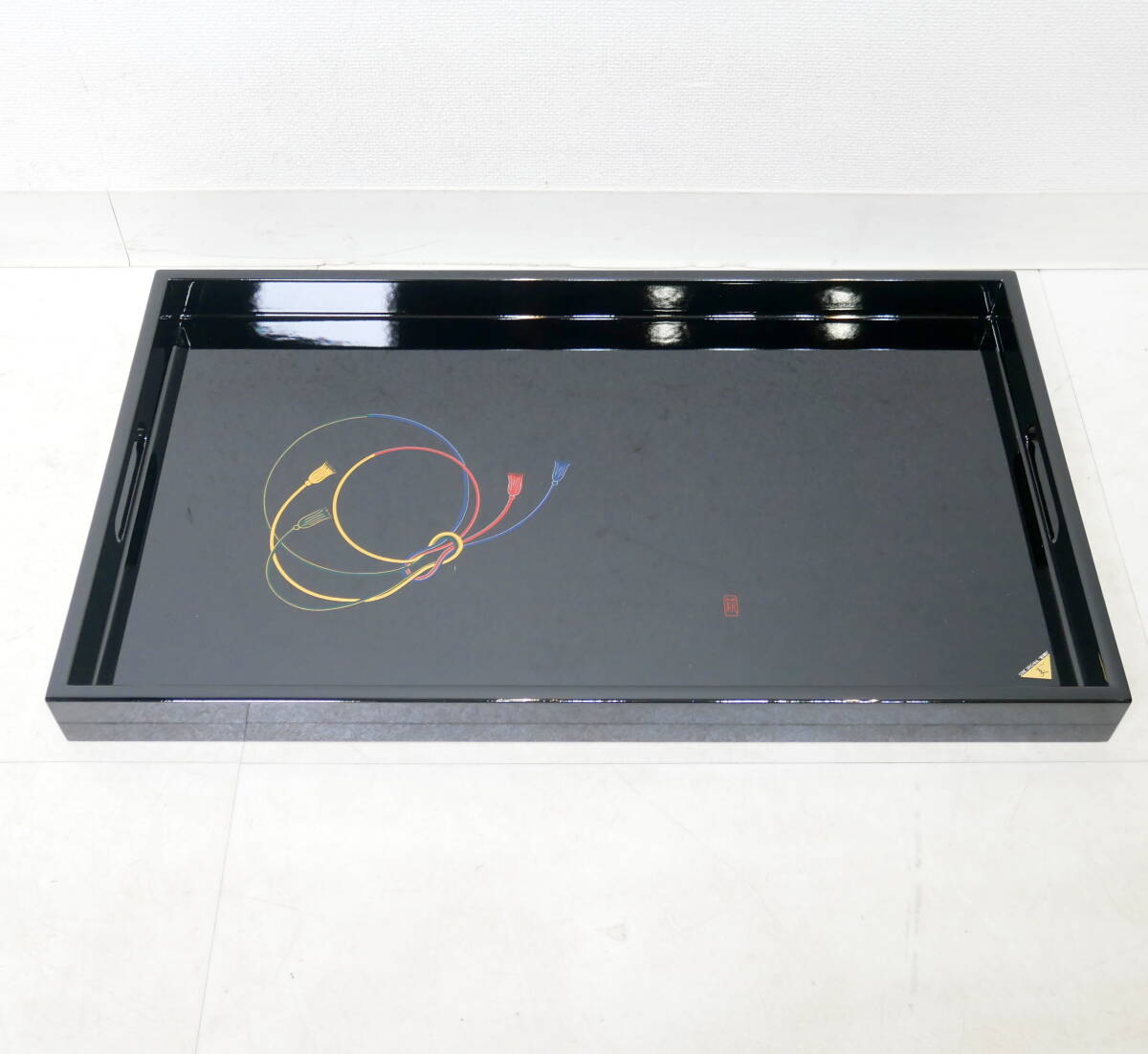 | ▲(R710-H68) 未使用 保管品 URUSHIKI&NURI-MONO 彩結び 尺七長手盆 漆器 お盆 天然木 漆 黒 ブラック 外箱付き | ||