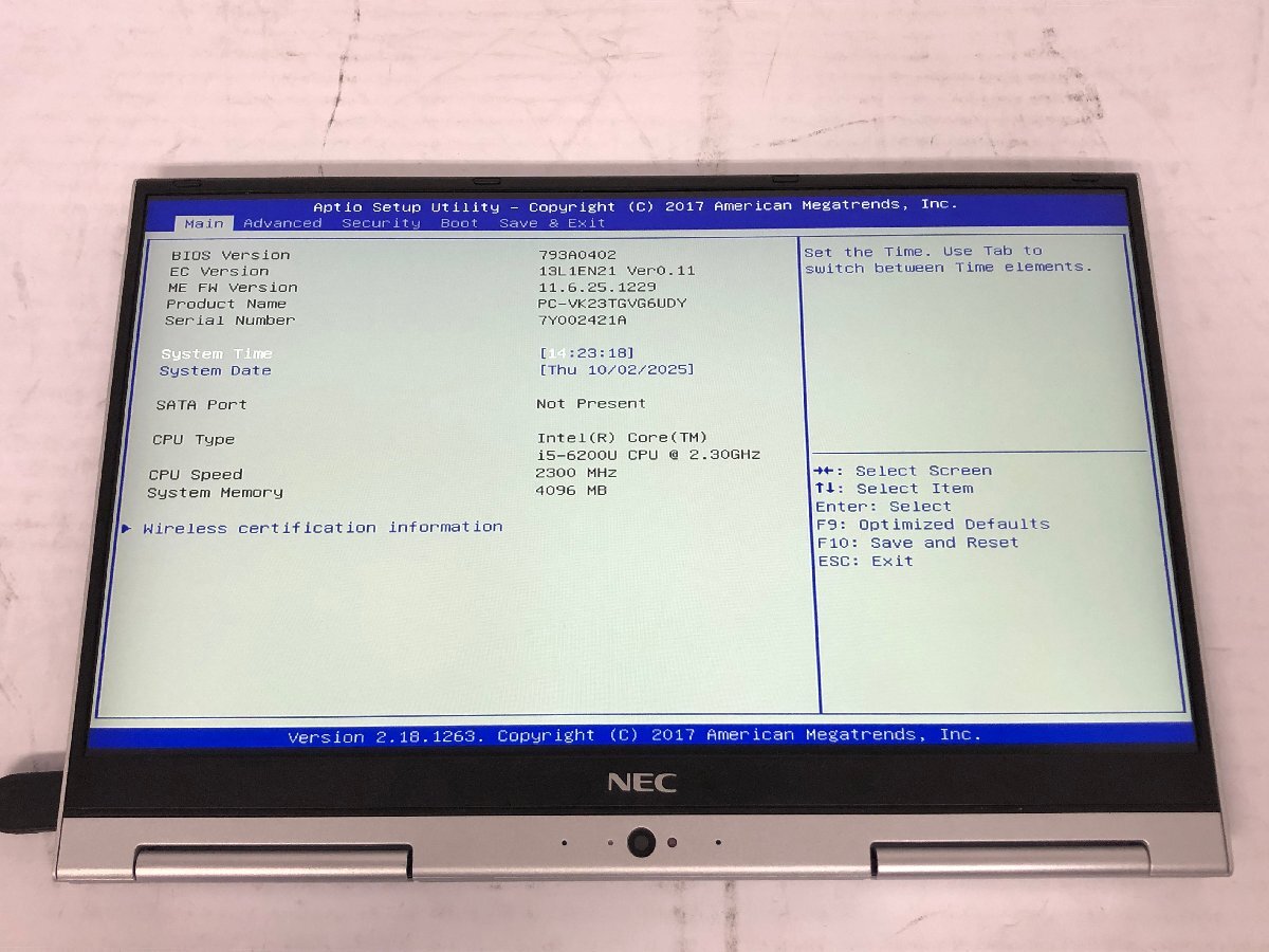 ジャンク/ NEC PC-VK23TGVG6UDY Intel Core i5-6200U メモリ4.1GB ストレージ無し 【K22334】