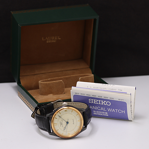 1円 箱付 稼働 セイコー ローレル 4S24-0030 640072 SV925 手巻き シャンパン文字盤 YGベゼル メンズ腕時計 0877800 9NBT MST
