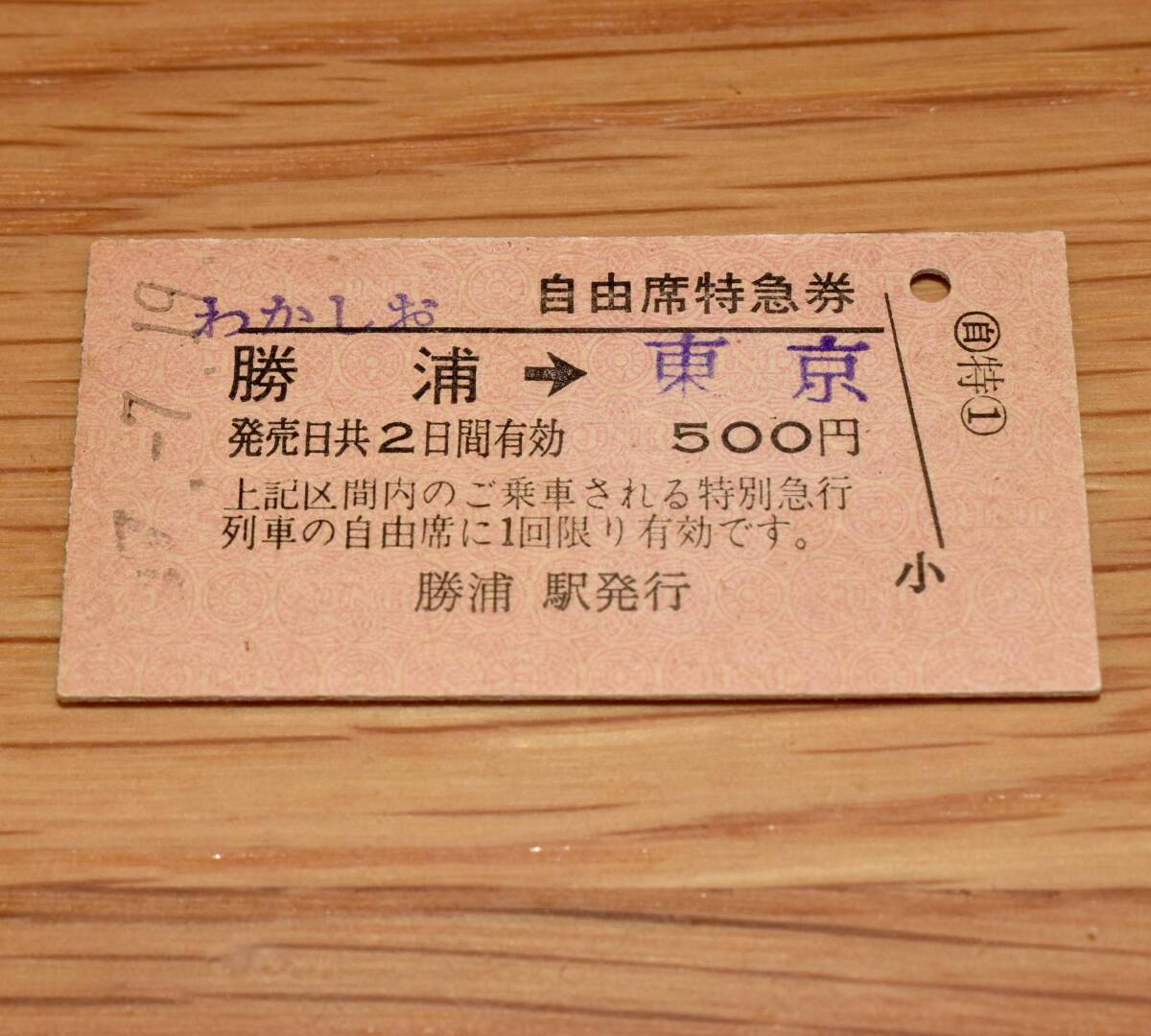 わかしお 自由席特急券 勝浦駅発行 です。古いものなので、経年劣化によるヤケ,シミ,汚れ,折れシワ等見られる場合があります。写真にてご確認下さい。