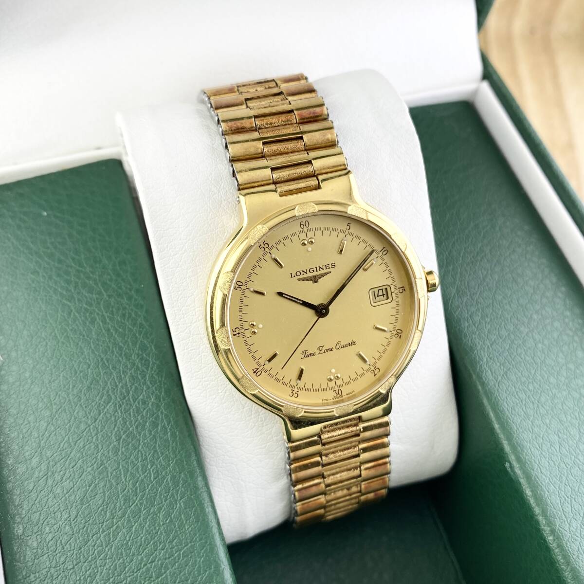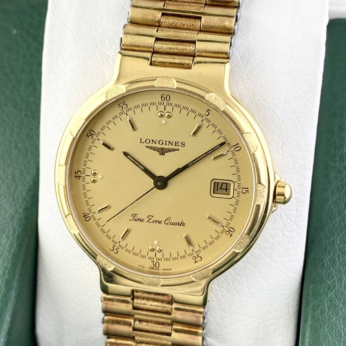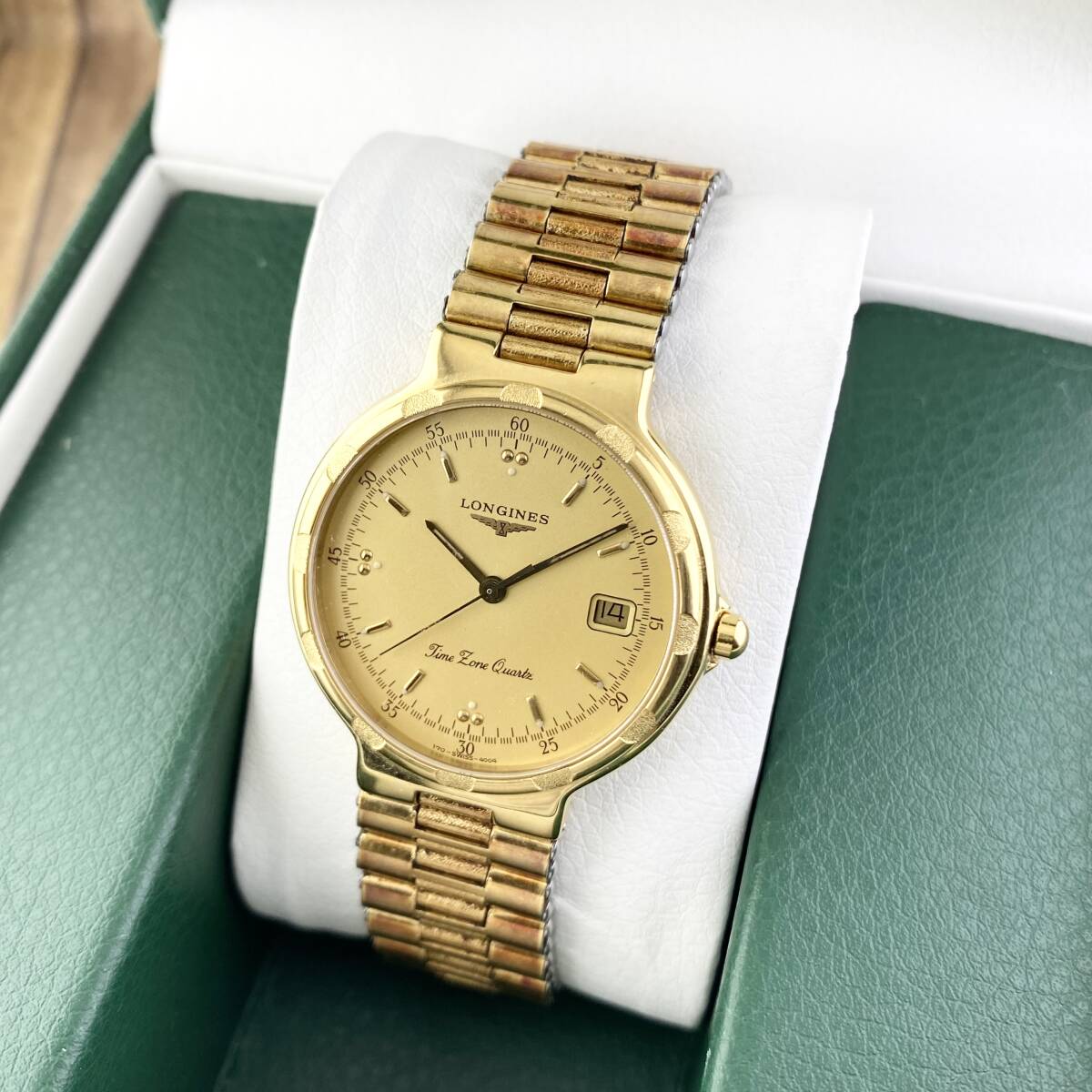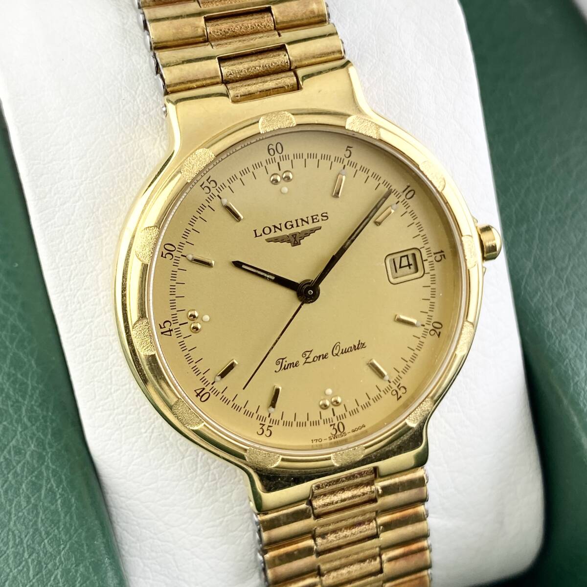 【1円〜】LONGINES ロンジン 腕時計 メンズ CONQUEST コンクエスト ゴールド文字盤 ラウンドフェイス デイト 正規品 | |||