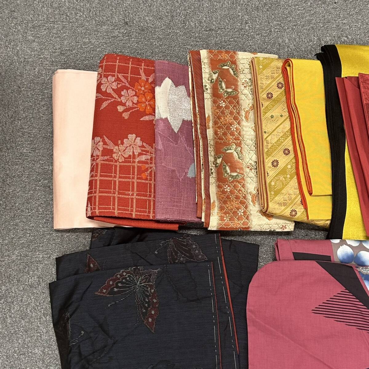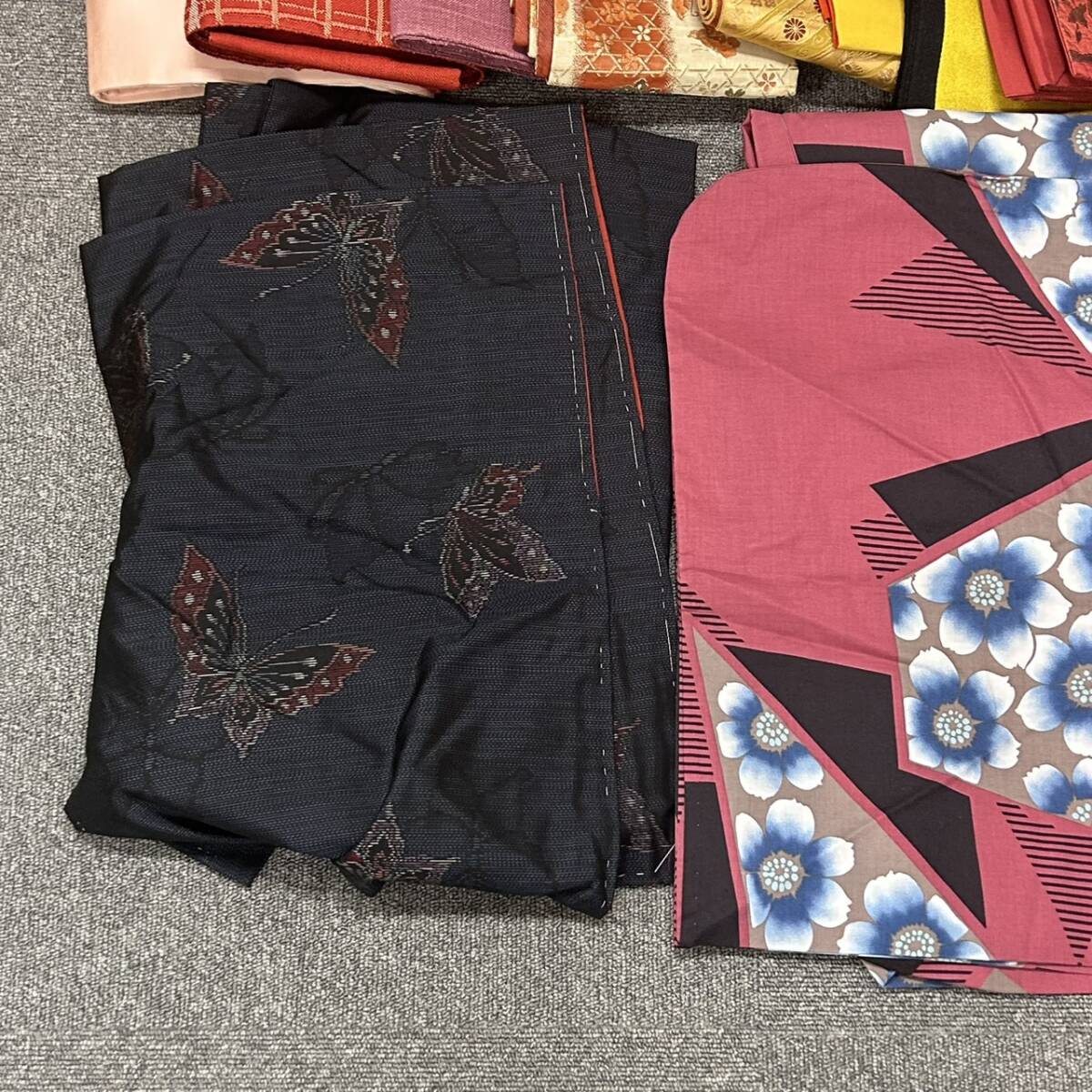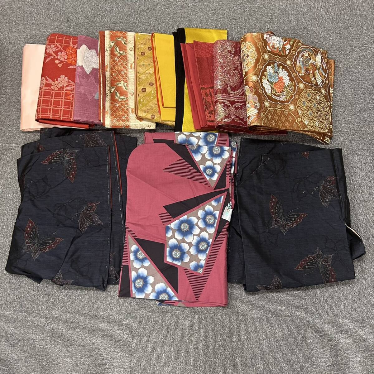 SB11218 着物 帯 羽織 和装 黒 赤 黄色 ピンク 朱色 袋帯 半幅帯 蝶柄 花柄 和服 おまとめ レディース | ||