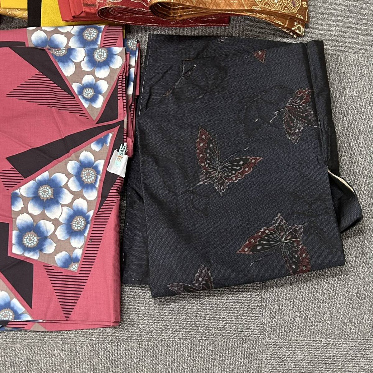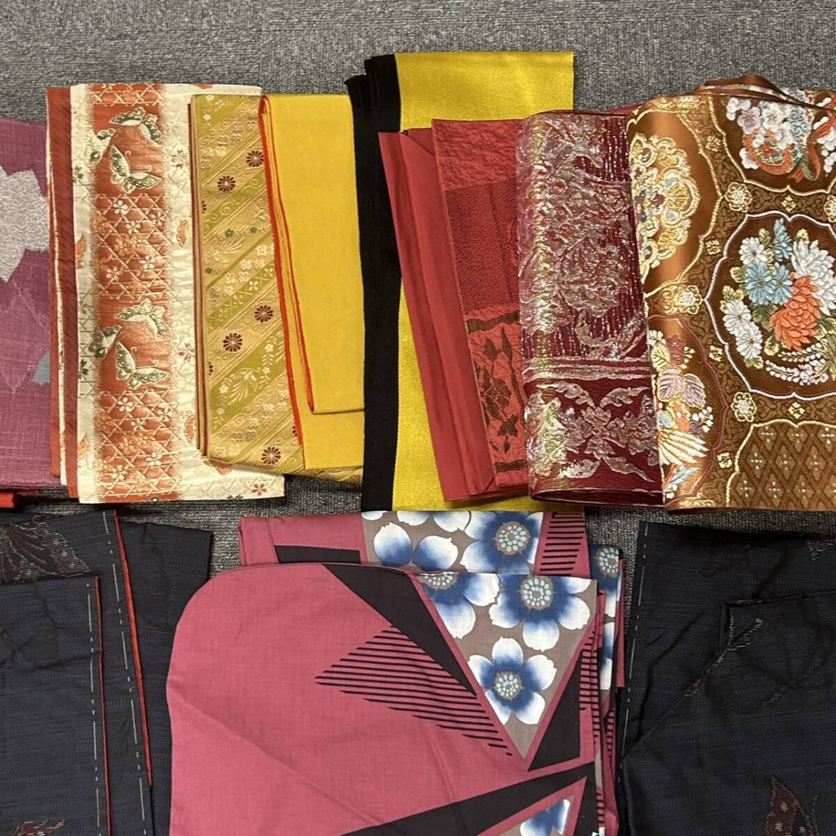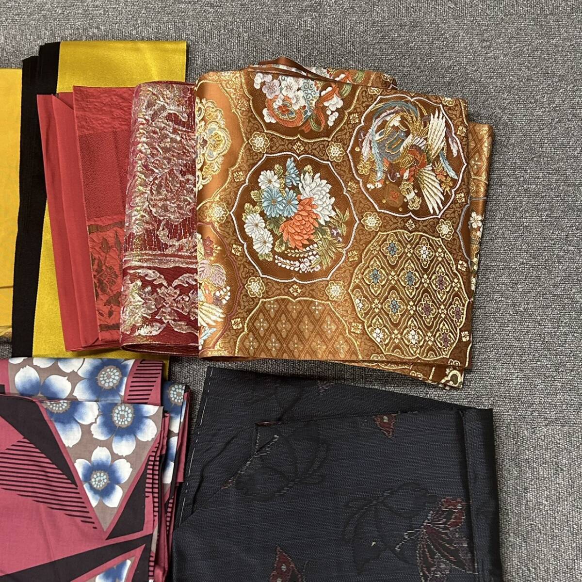 SB11218 着物 帯 羽織 和装 黒 赤 黄色 ピンク 朱色 袋帯 半幅帯 蝶柄 花柄 和服 おまとめ レディース | ||