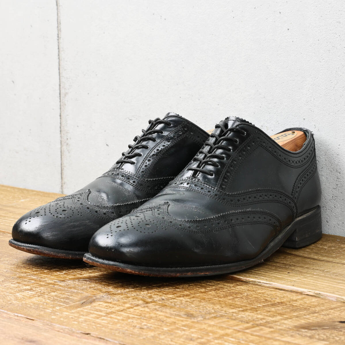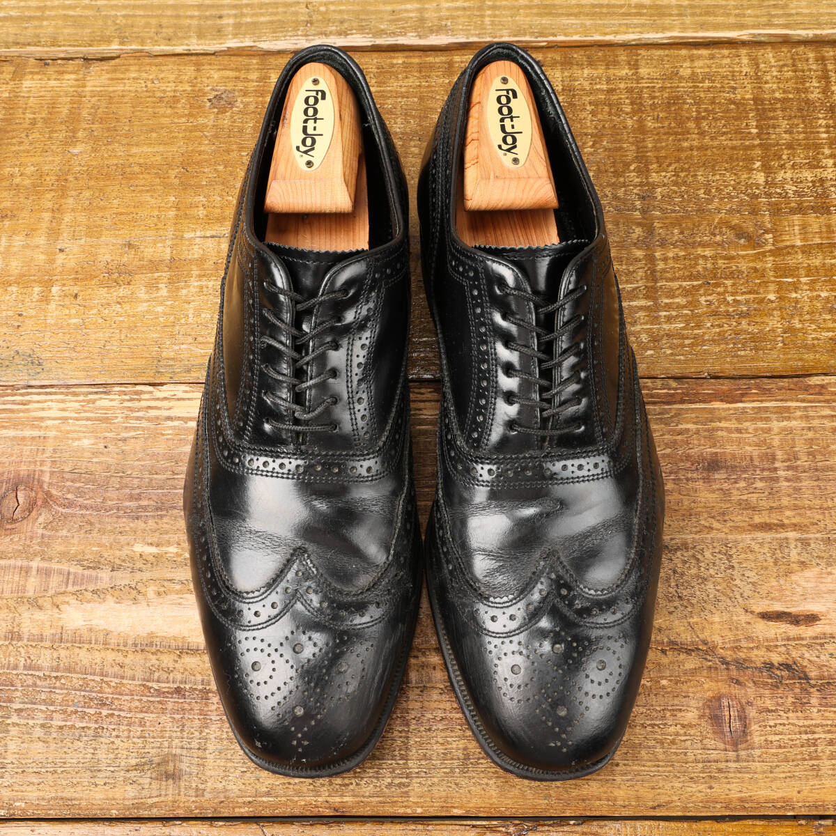 【ブランド】 FLORSHEIM / フローシャイム 【アイテム】 ウイングチップ レザーシューズ 【商品説明】 アメリカで購入しました、フローシャイムのウイングチップタイプのレザーシューズになります。 【カラー】 ブラック 【コンディション】 使用に伴う擦れやソールの減りが見られます。 【サイズ】 サイズ:US 10 D (28cm Dワイズ) ※シューキーパーは付属いたしません | |||