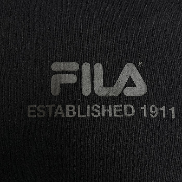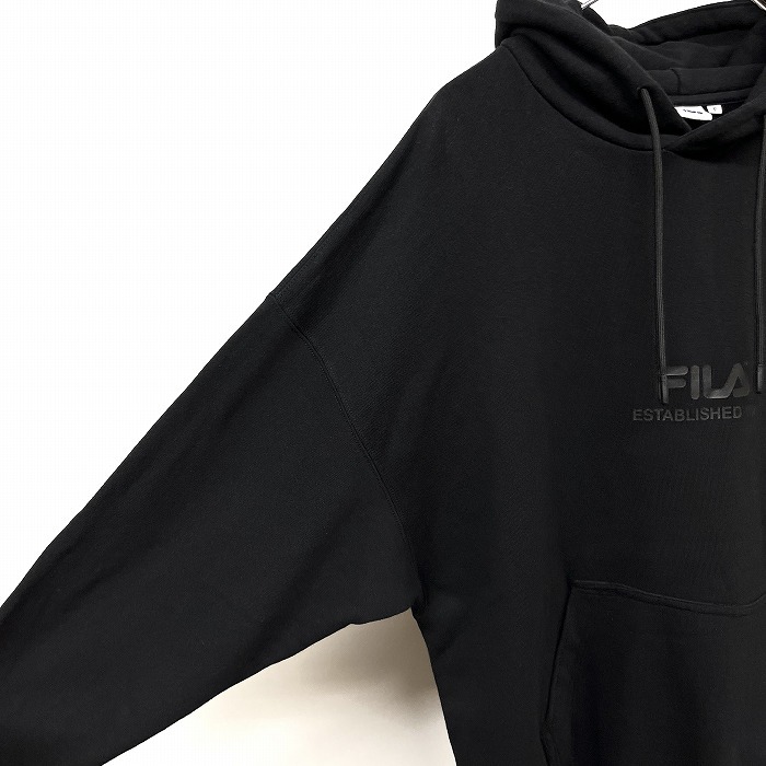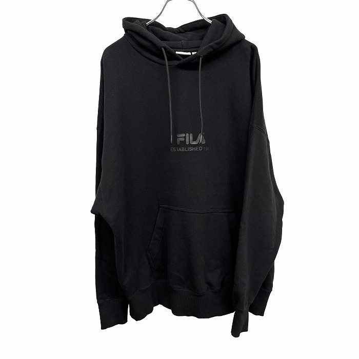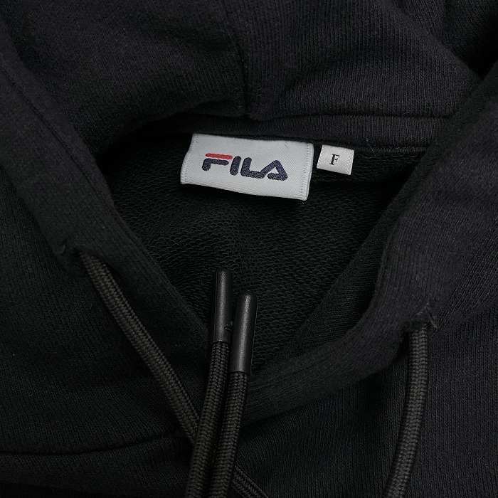 商品タイトル | フィラ FILA プルオーバー パーカー スウェット 裏毛 ロゴプリント 英字 文字 長袖 綿100% F ブラック 黒 メンズ(レディース?) |