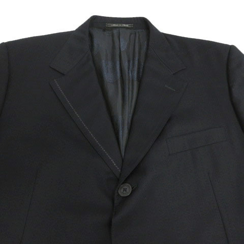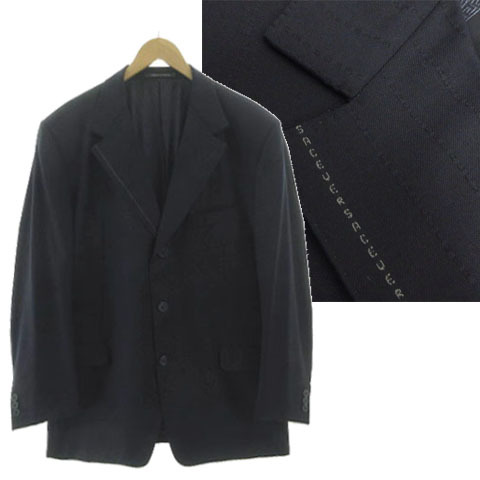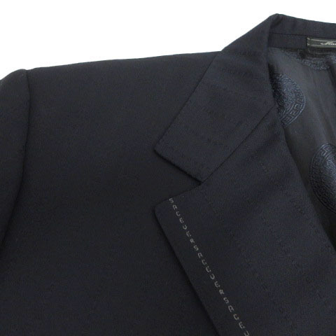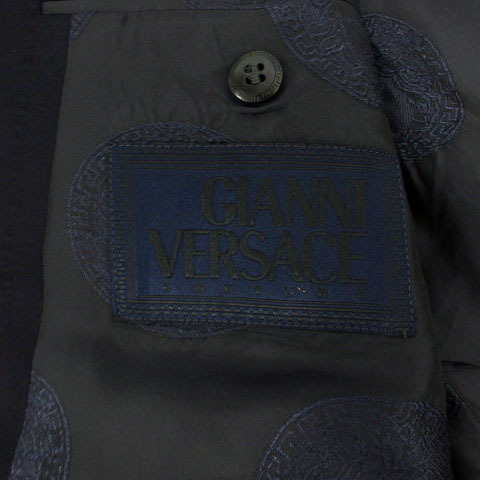 ジャンニヴェルサーチ GIANNI VERSACE ジャケット ヴィンテージ ロゴ刺繍 ストライプ 裏地メドゥーサ柄 イタリア製 ネイビー 56