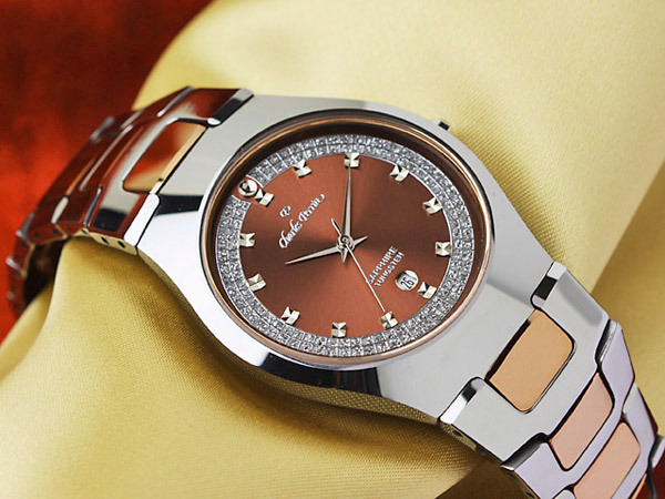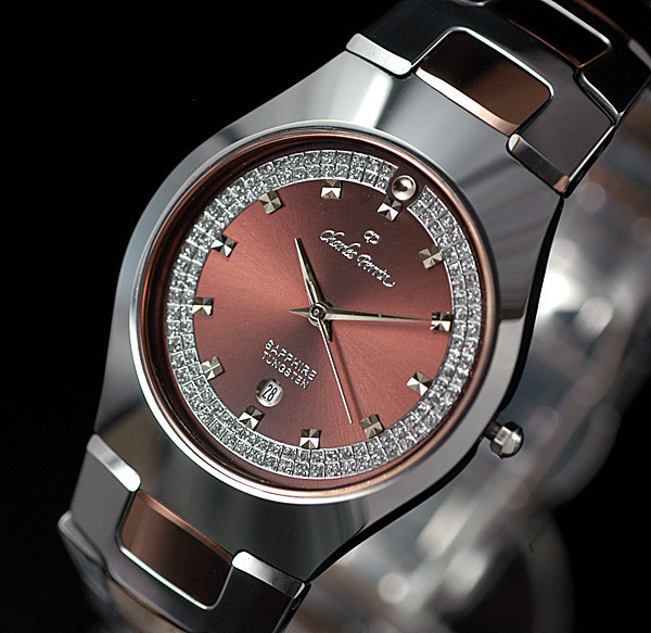 今回の品は、ケースにタングステン、ベルトのカラー部分にセラミックを採用し、文字盤にCZダイヤを散りばめた豪華なスタイリッシュウォッチ。