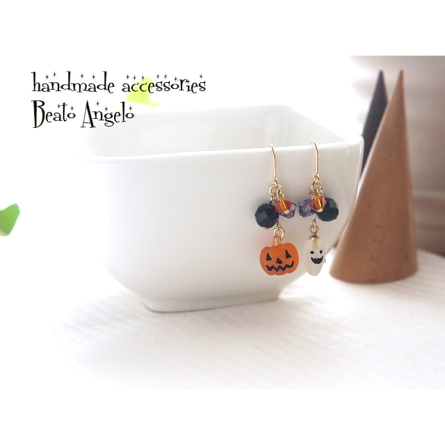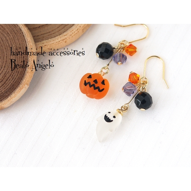 かぼちゃとおばけのハロウィンピアス(p-008)G