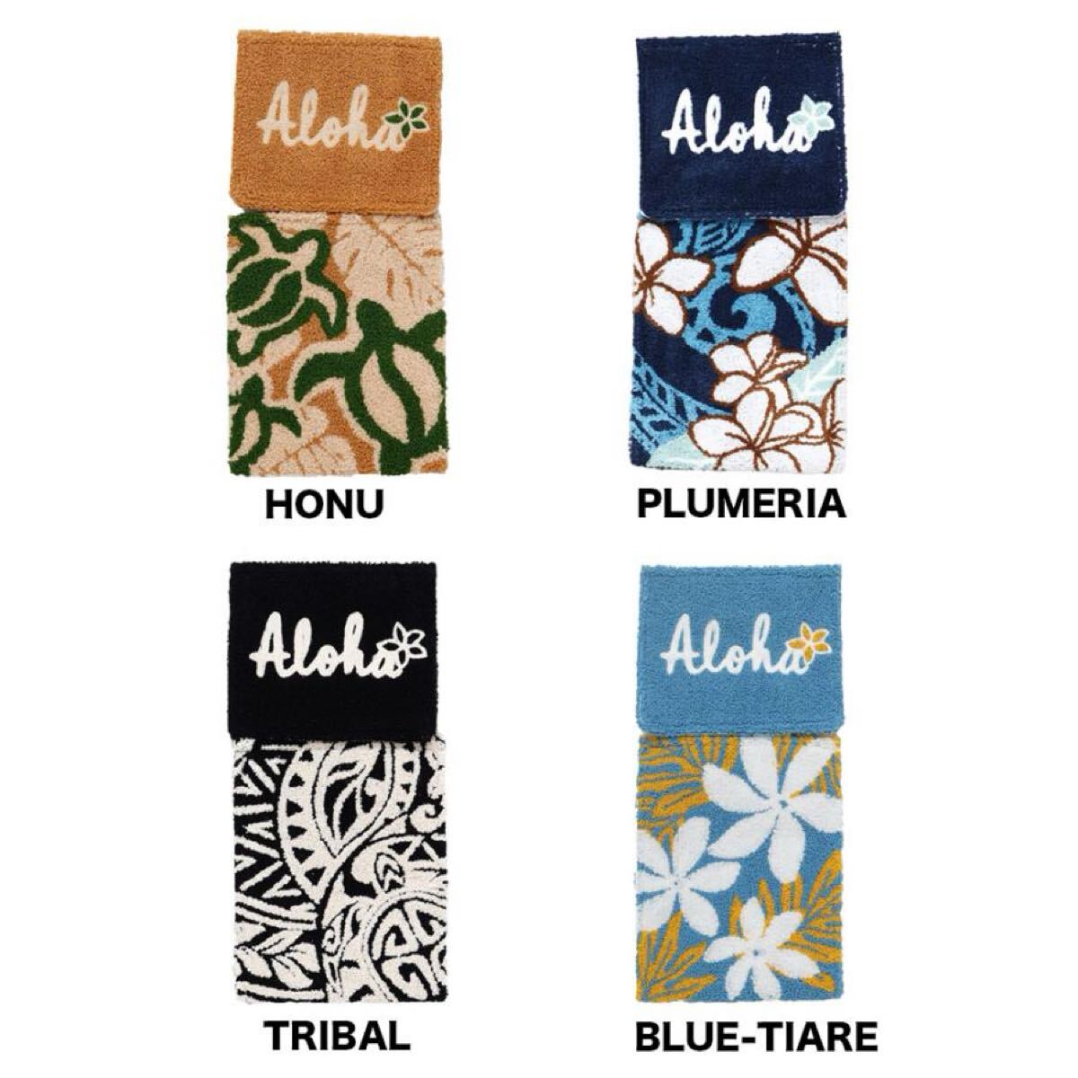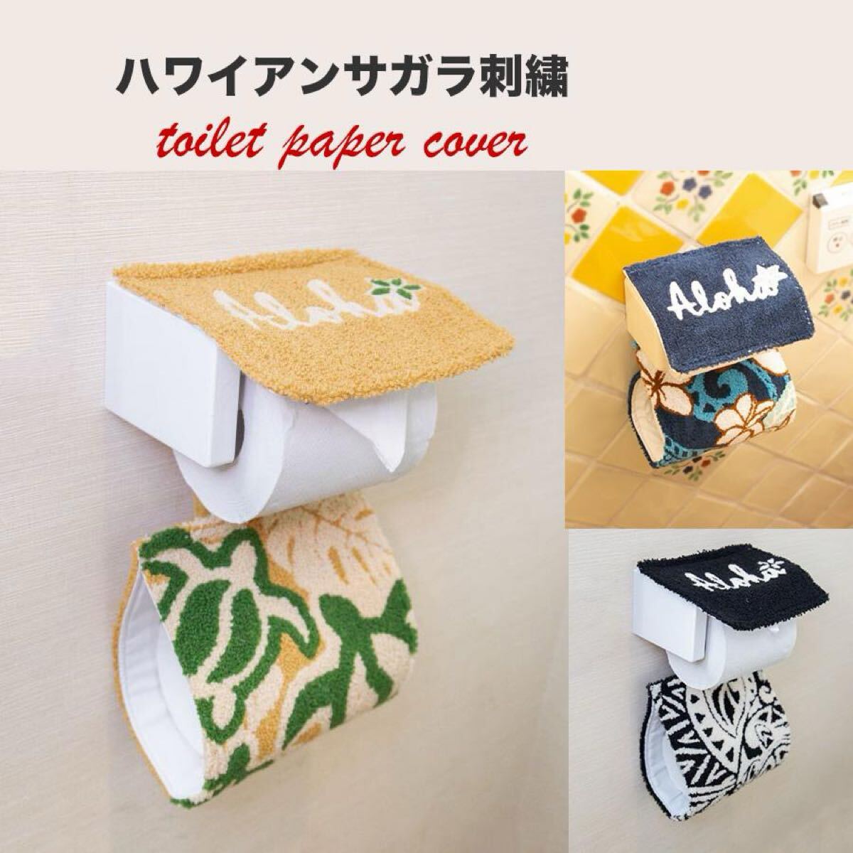 ハワイを感じるモチーフをサガラ刺しゅうで表現したトイレットペーパーホルダー。