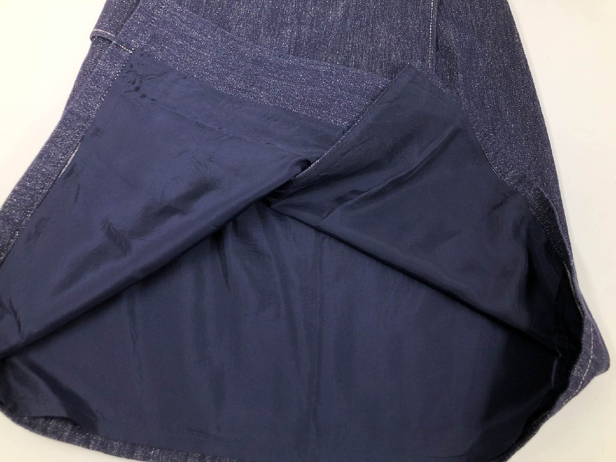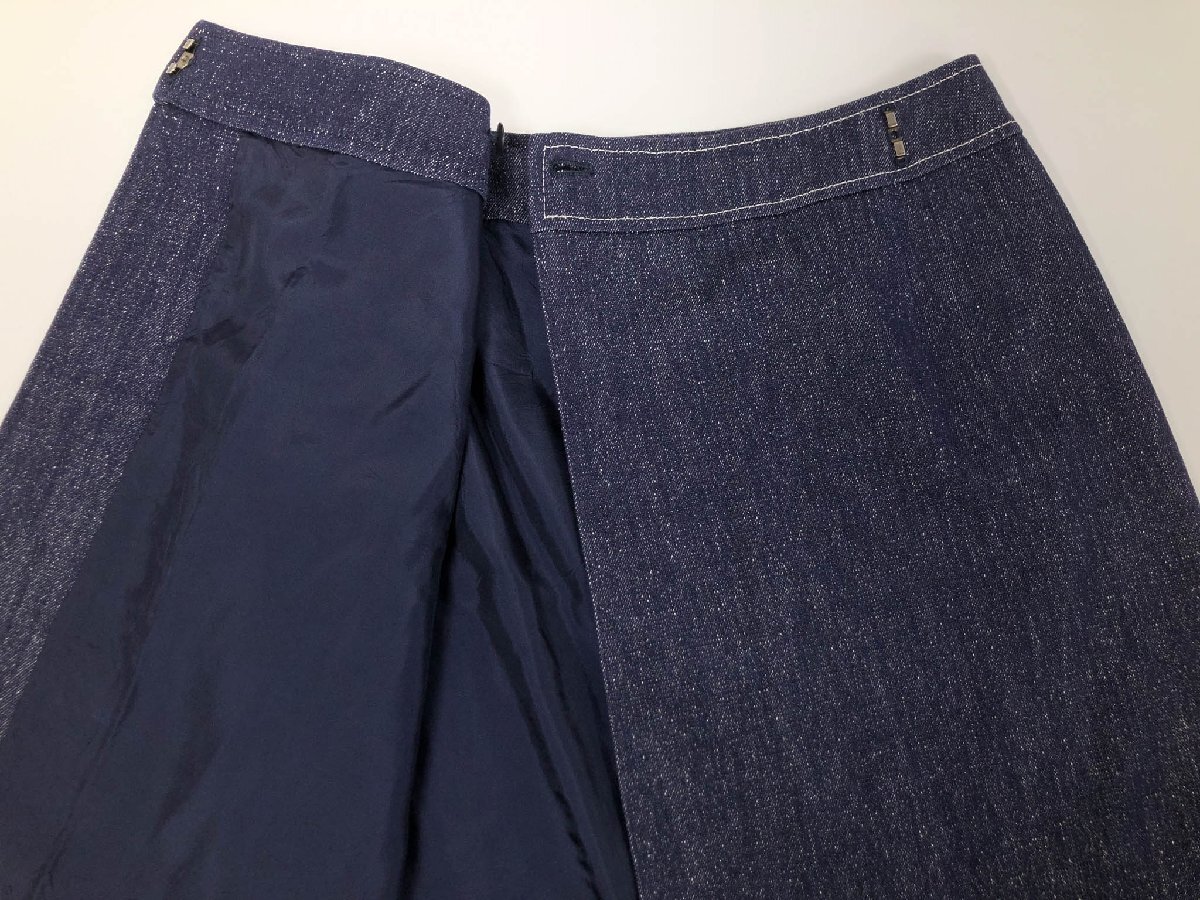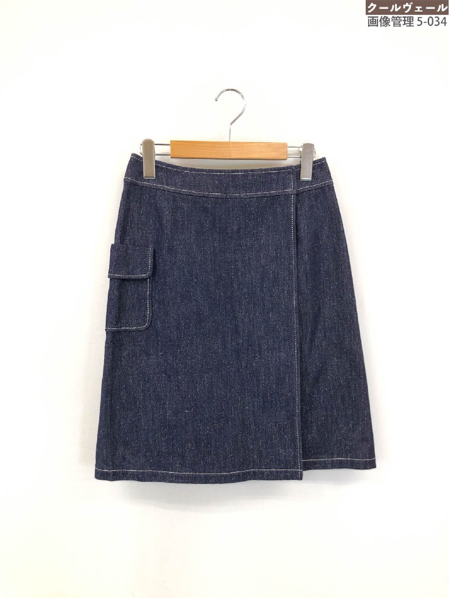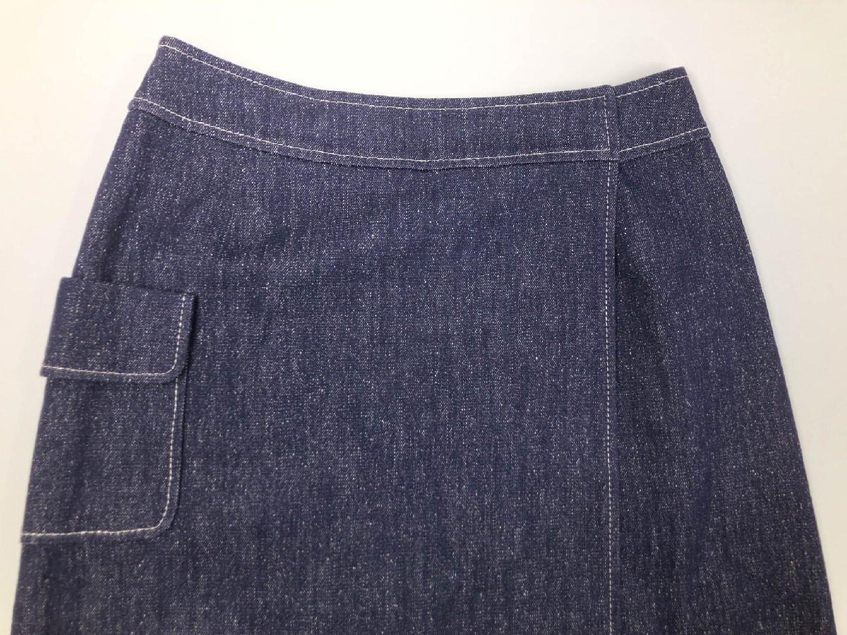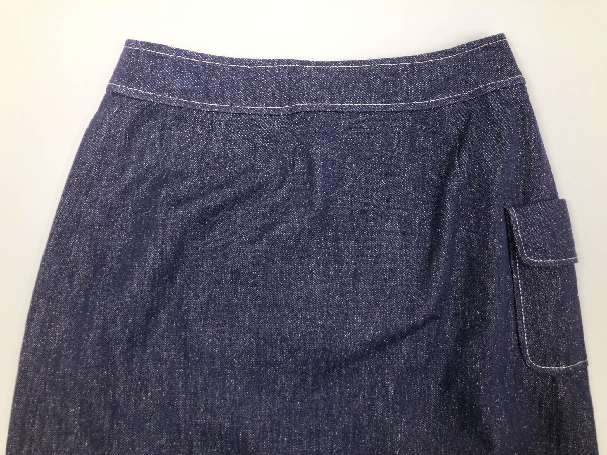 極美品【ハロッズ Harrods】ラメ糸入り デニム 巻きスカート ラップスカート (レディース) size2 インディゴブルー系 ◇35LF4031◇