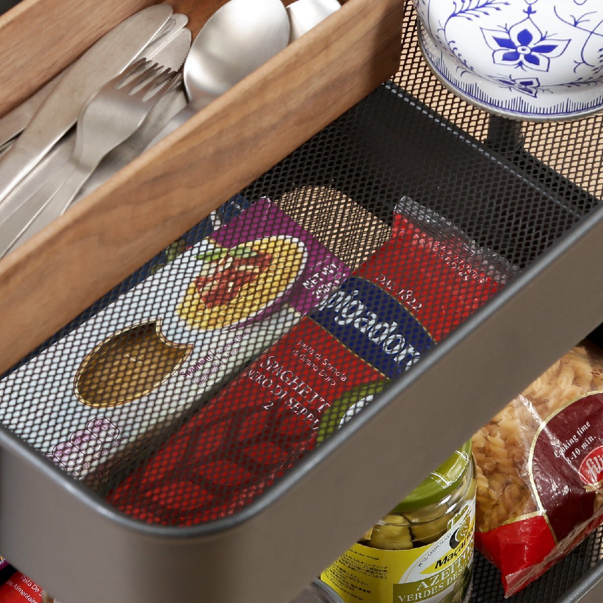 サイズ | 全体:幅450 × 奥行320 × 高さ785mm 耐荷重(カゴ1段):15kg カゴ内寸:400x290x80mm ※サイズ詳細はサイズ画像をご参照ください。 |