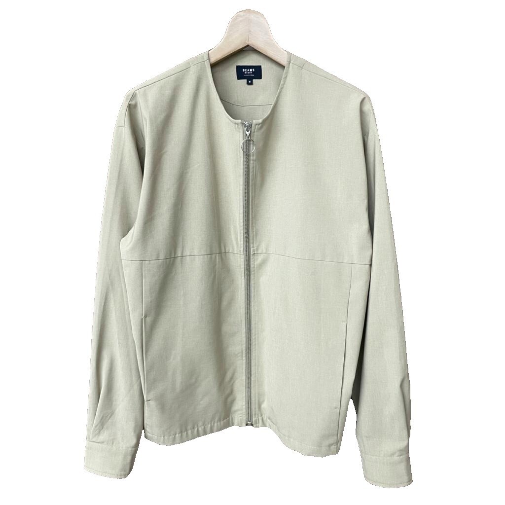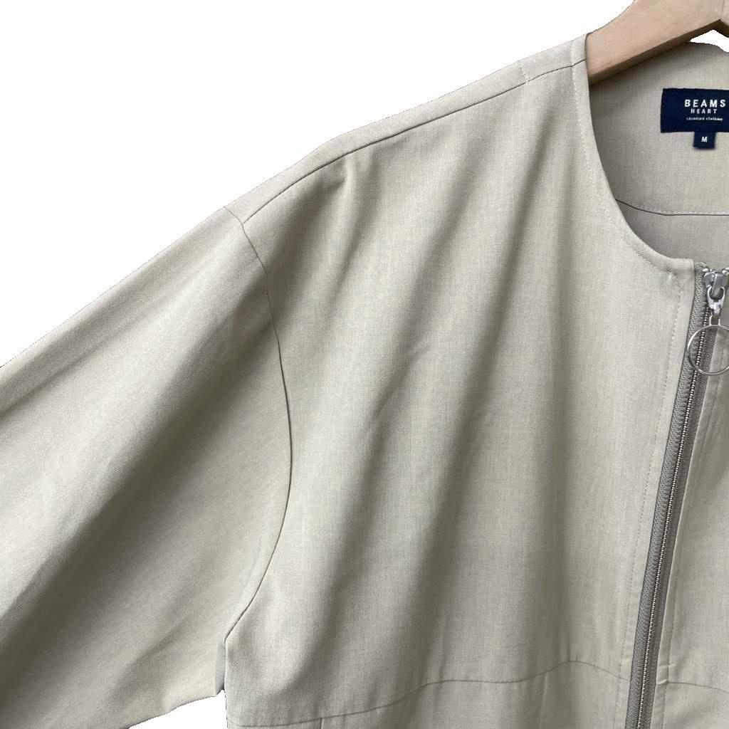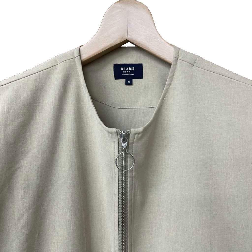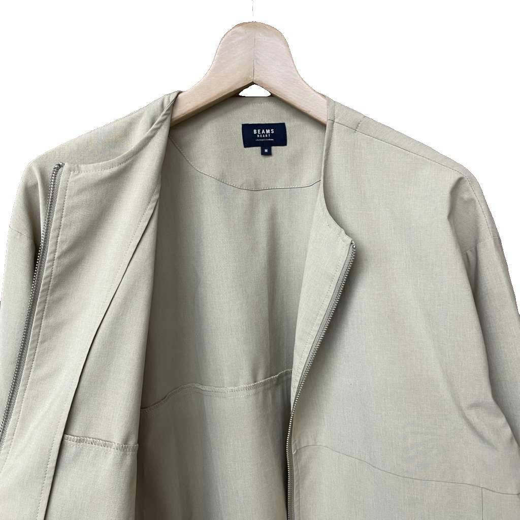 ビームスハート BEAMS HEART 美品 COOLMAX R ノーカラーブルゾン ジャケット 42-18-0321-639 M ベージュ メンズ