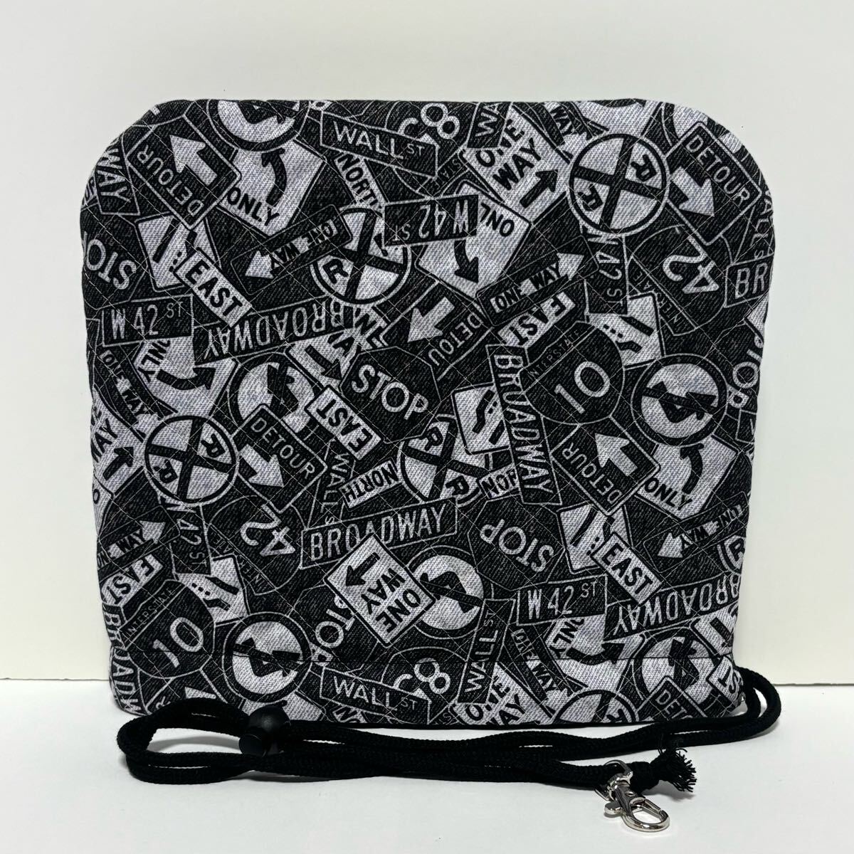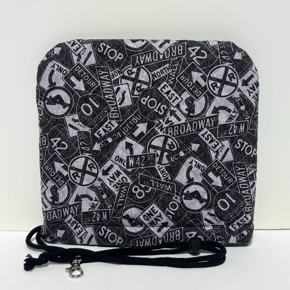 道路標識柄のキルティングの生地でアイアン用のヘッドカバーを作成しました。