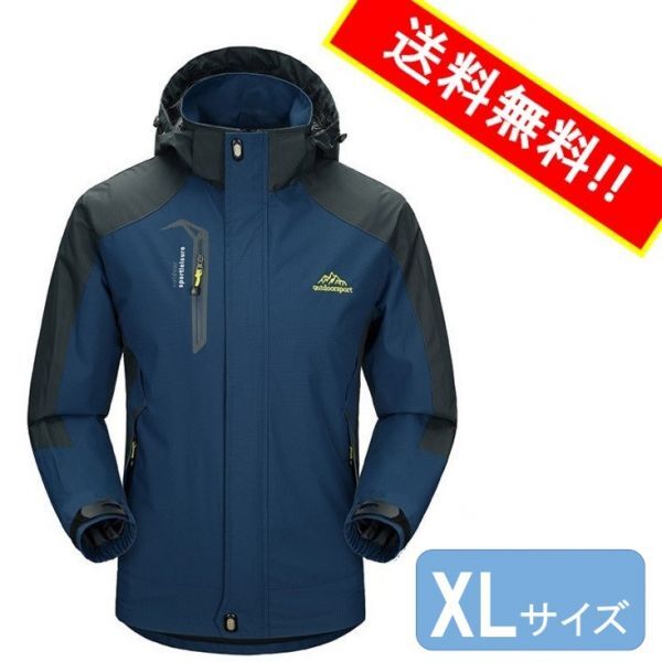 送料込 ☆マウンテンパーカー ネイビー XLサイズ 防寒 ジャケット メンズ アウトドア ナイロンジャケット コート バイク スノボ