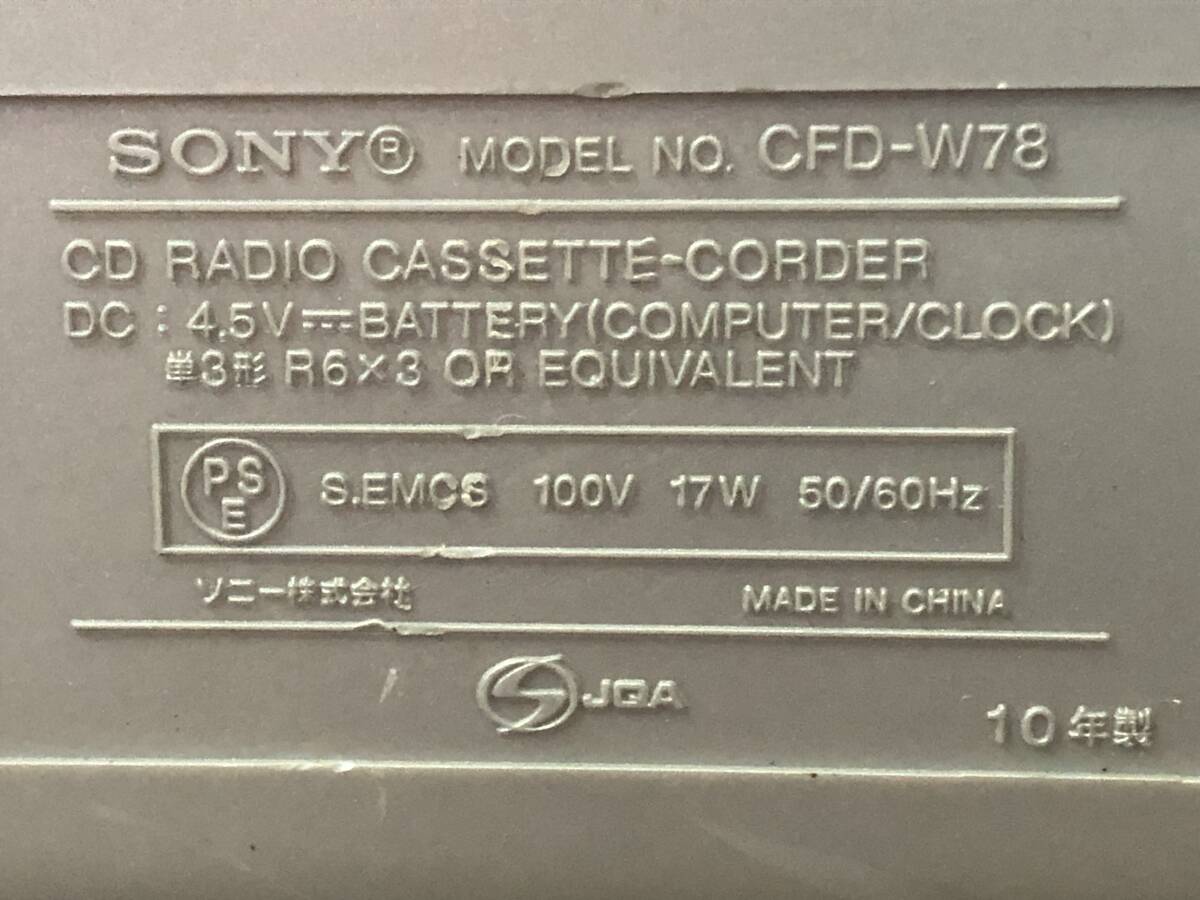 Jラ1452 SONY ソニー CDラジカセ ダブルカセット CFD-W78