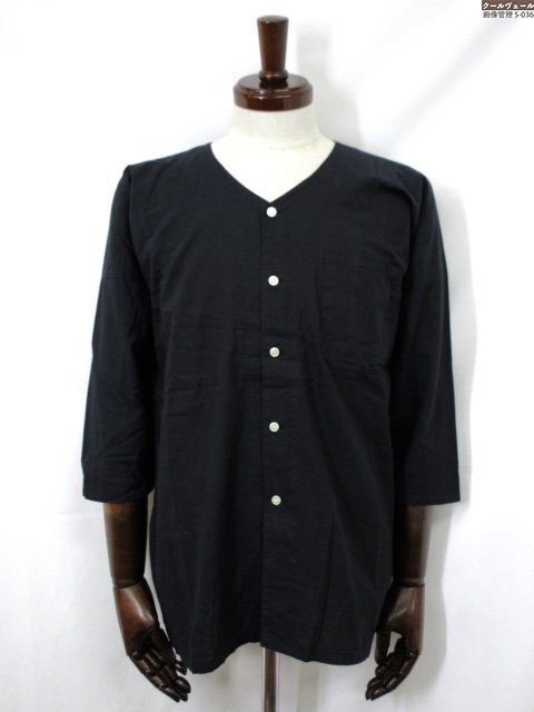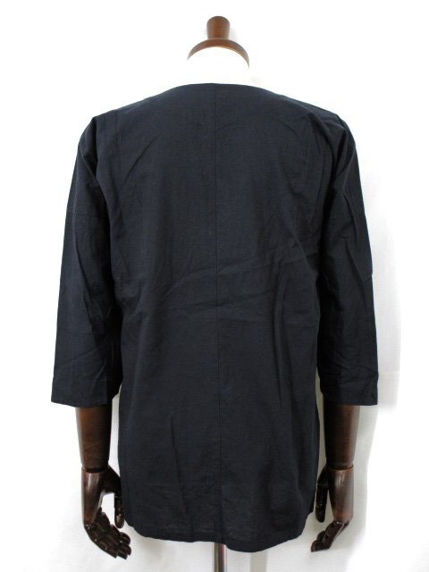 超美品【浅草めうがや】CST5097 コットン100% ノーカラー 五分袖 鯉口シャツ (メンズ) size中 ブラック ◇17MK6268◇