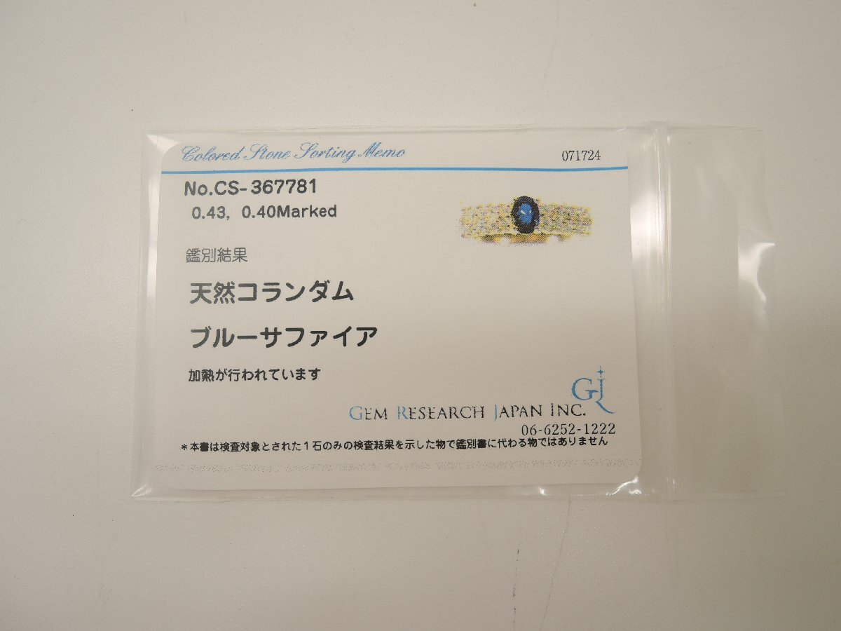 【新品仕上げ済】 K18 サファイア 0.43ct ダイア 0.40ct 10号 指輪 リング ゴールド ソーティング付 ランクA Diamond NBJ