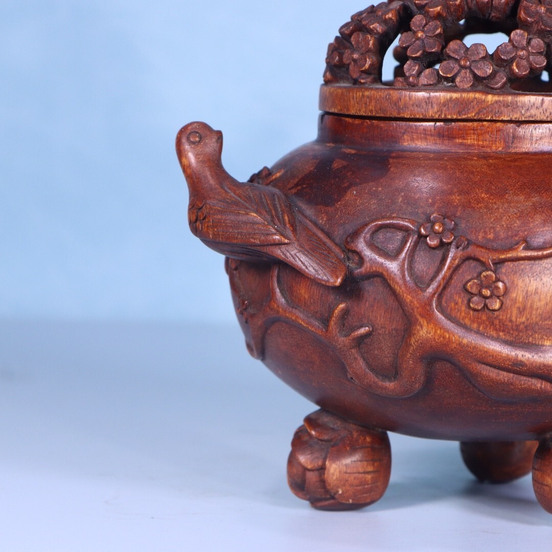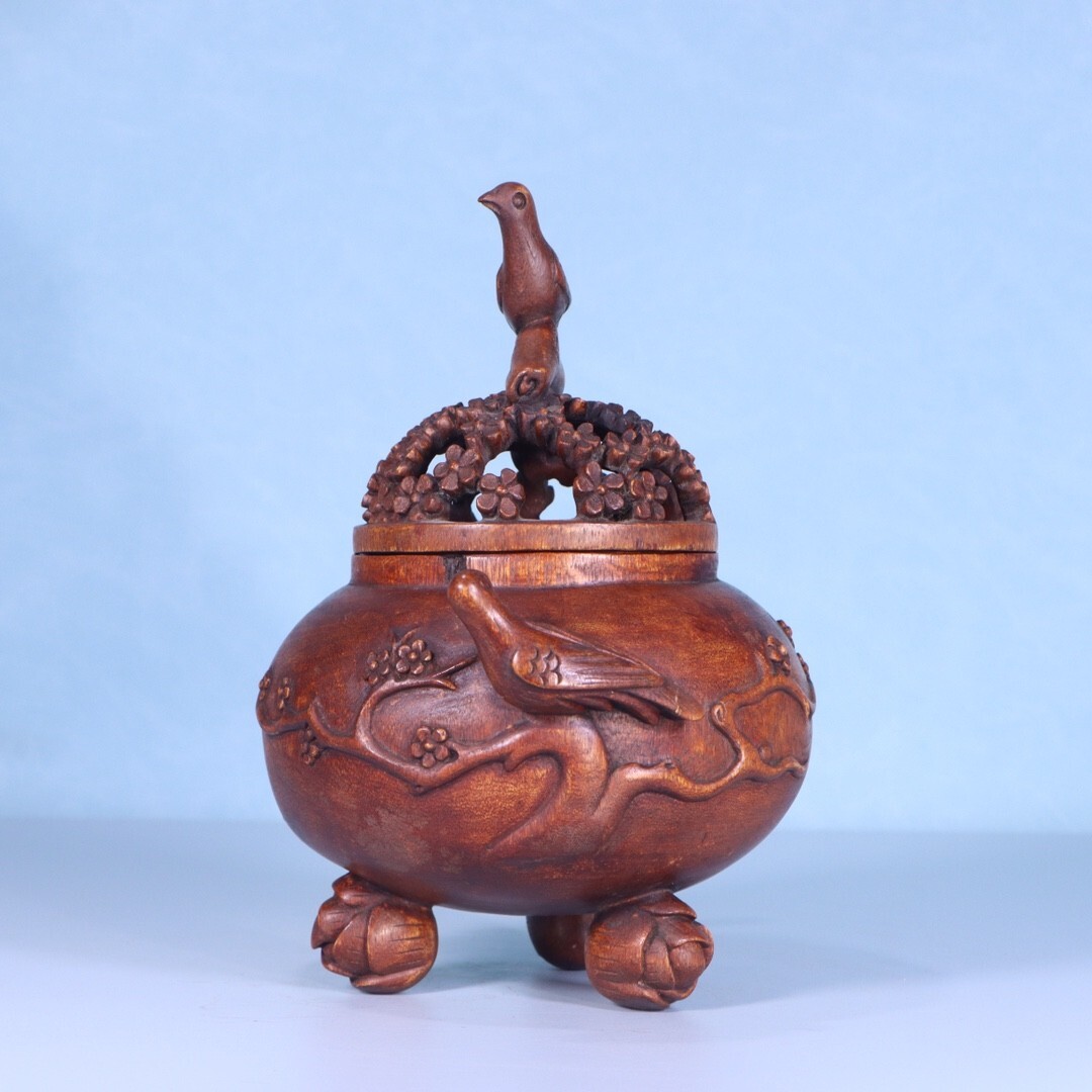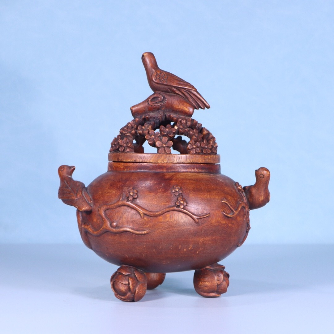「清時代 老沈香の木 彫り 喜上眉梢 香薰爐」極細工 擺件 賞物 古美術 骨董品 旧蔵出
