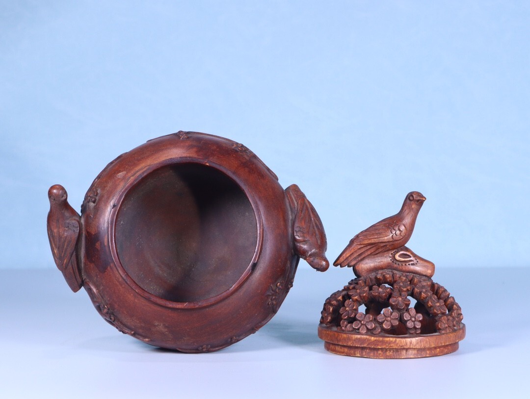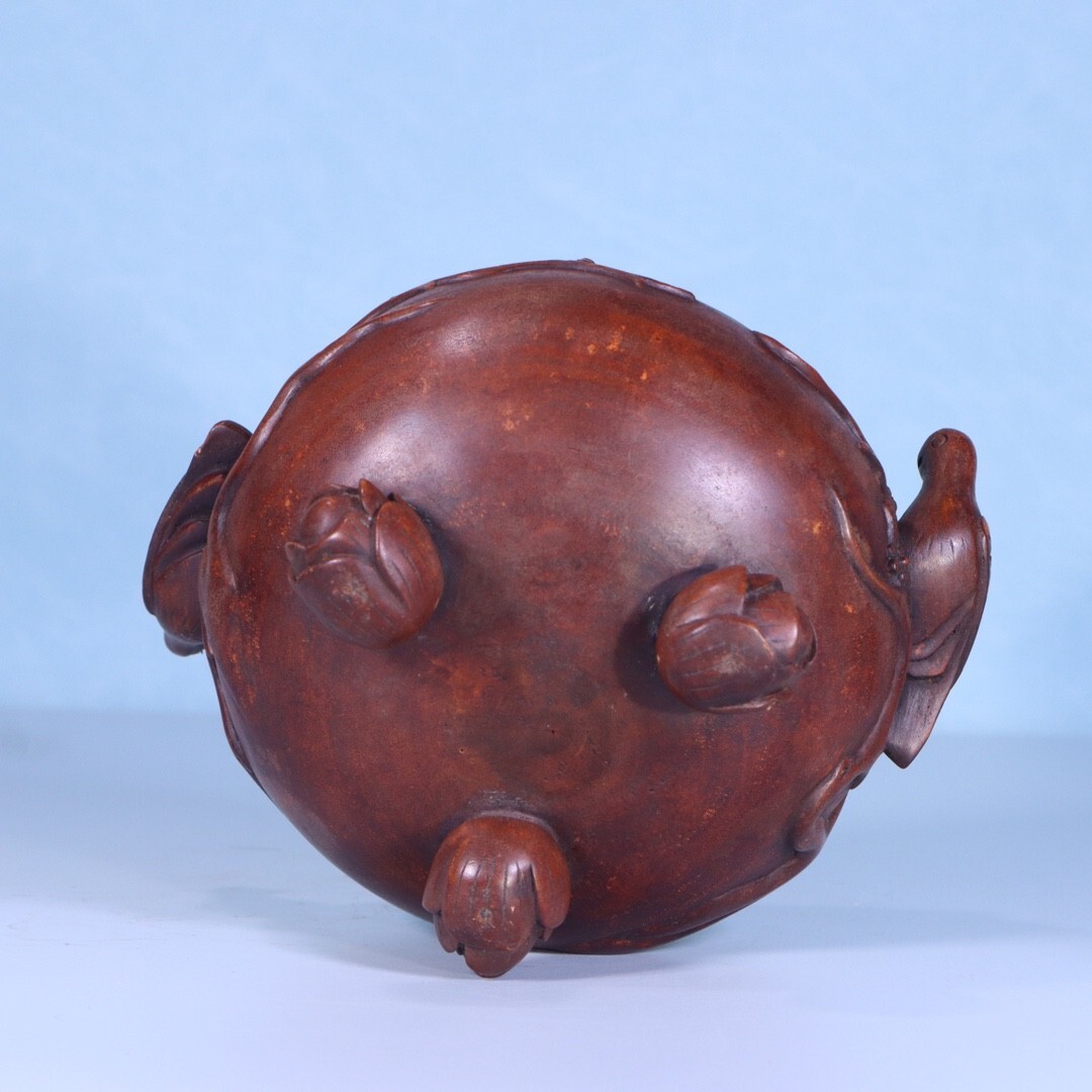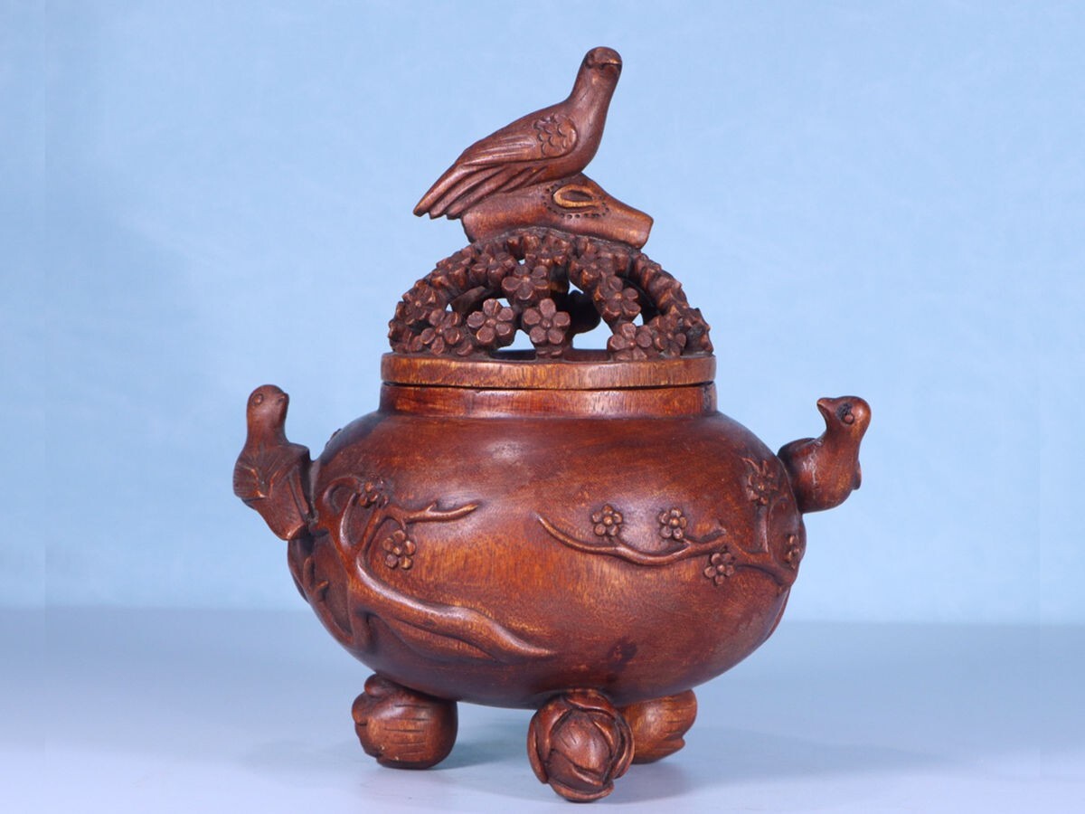 「清時代 老沈香の木 彫り 喜上眉梢 香薰爐」極細工 擺件 賞物 古美術 骨董品 旧蔵出