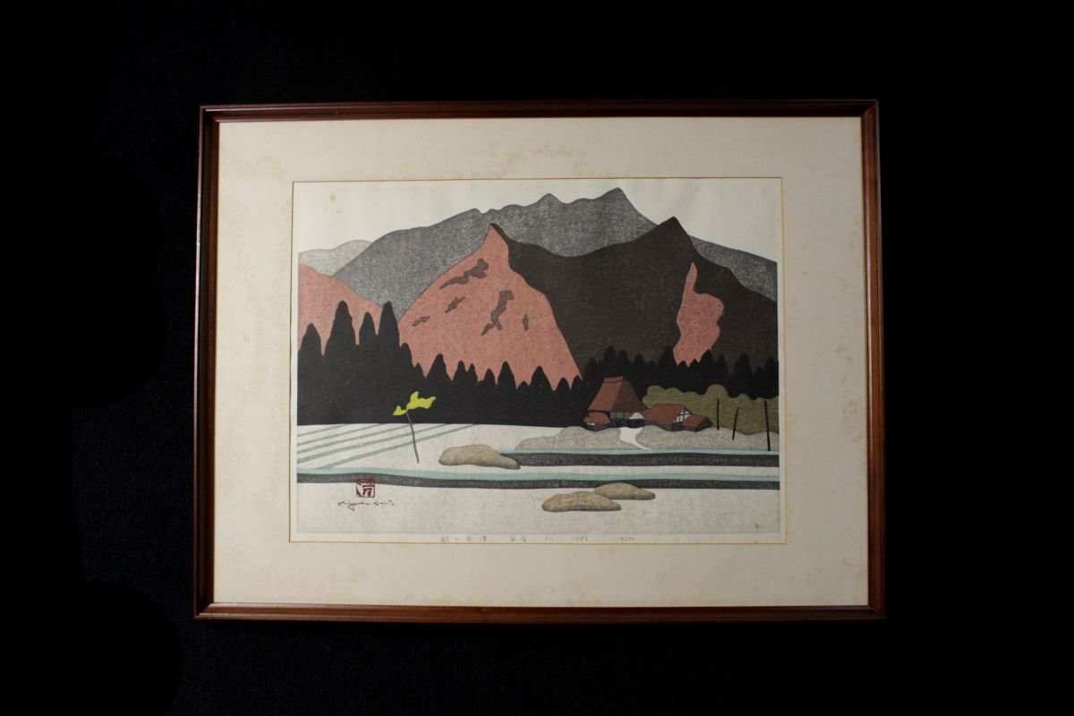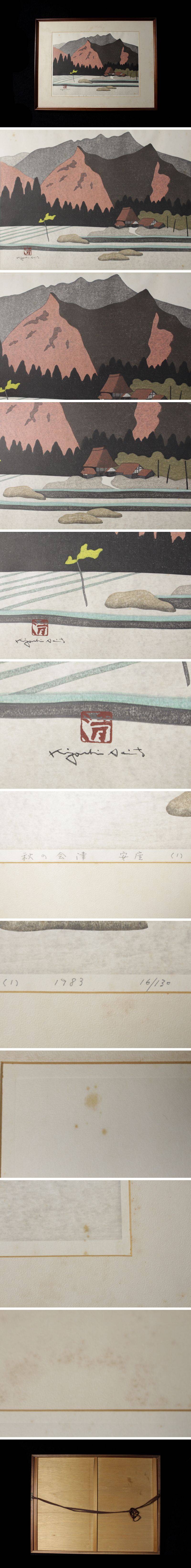 * * * 商品詳細 * * * ここでしか出逢うことのできない唯一の美をご紹介させて頂きます。 真作保証致します。 作家略歴 1907福島県河沼郡会津坂下町に生まれる 1931上京、宣伝ポスターの仕事をしながら独学で油絵を学ぶ 1932第9回白日会展に油彩を出品、初入選 1936初めて木版画を制作。第5回日本版画協会展ににて初入選 1940初めて「会津の冬」を制作 1944朝日新聞社に入社 1949東京目白旧徳川邸にて開催されたサロン・ド・プランタン展にて1等賞を受賞 1952アメリカで個展開催しニューヨークタイムズ紙に絶賛される 1954朝日新聞社を退社 1956アメリカやメキシコ各地で版画の指導を行う 1969カナダ、アメリカで個展開催 1970鎌倉市に転居 1981勲四等瑞宝章を受章 1983斉藤清展(神奈川県立近代美術館) 1987故郷の福島県会津柳津町に転居 1995文化功労者 1997逝去。やないづ町立斎藤清美術館開館。 ■サイズ/10号 額:横75.5cm×縦57.5cm 画寸:横52.5㎝×縦38㎝ ■状態/額縁にスレ、傷、面材の欠損、裏の留め具が外れやすいです。 白枠、画にシミがございます。 ※写真にてご確認、ご了承の上ご入札ください。