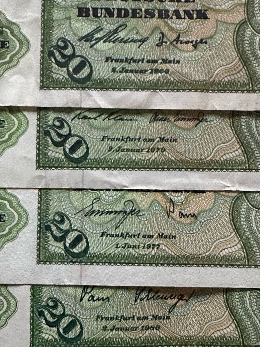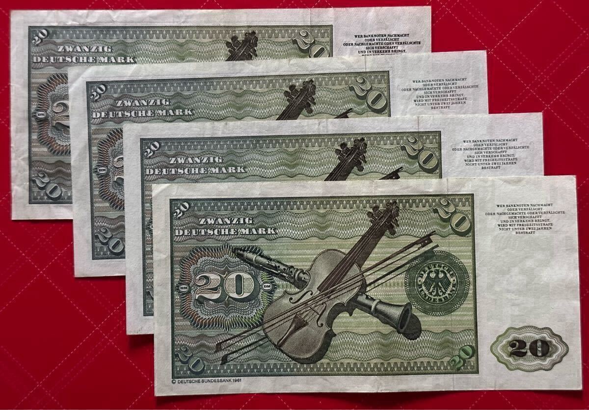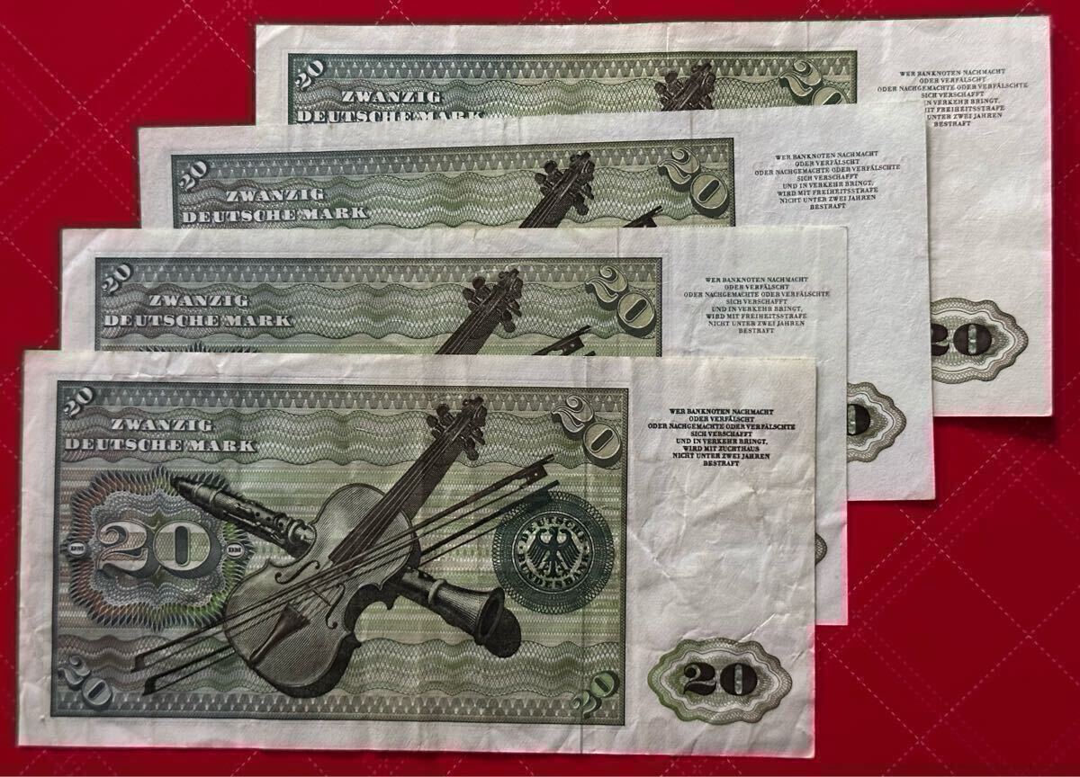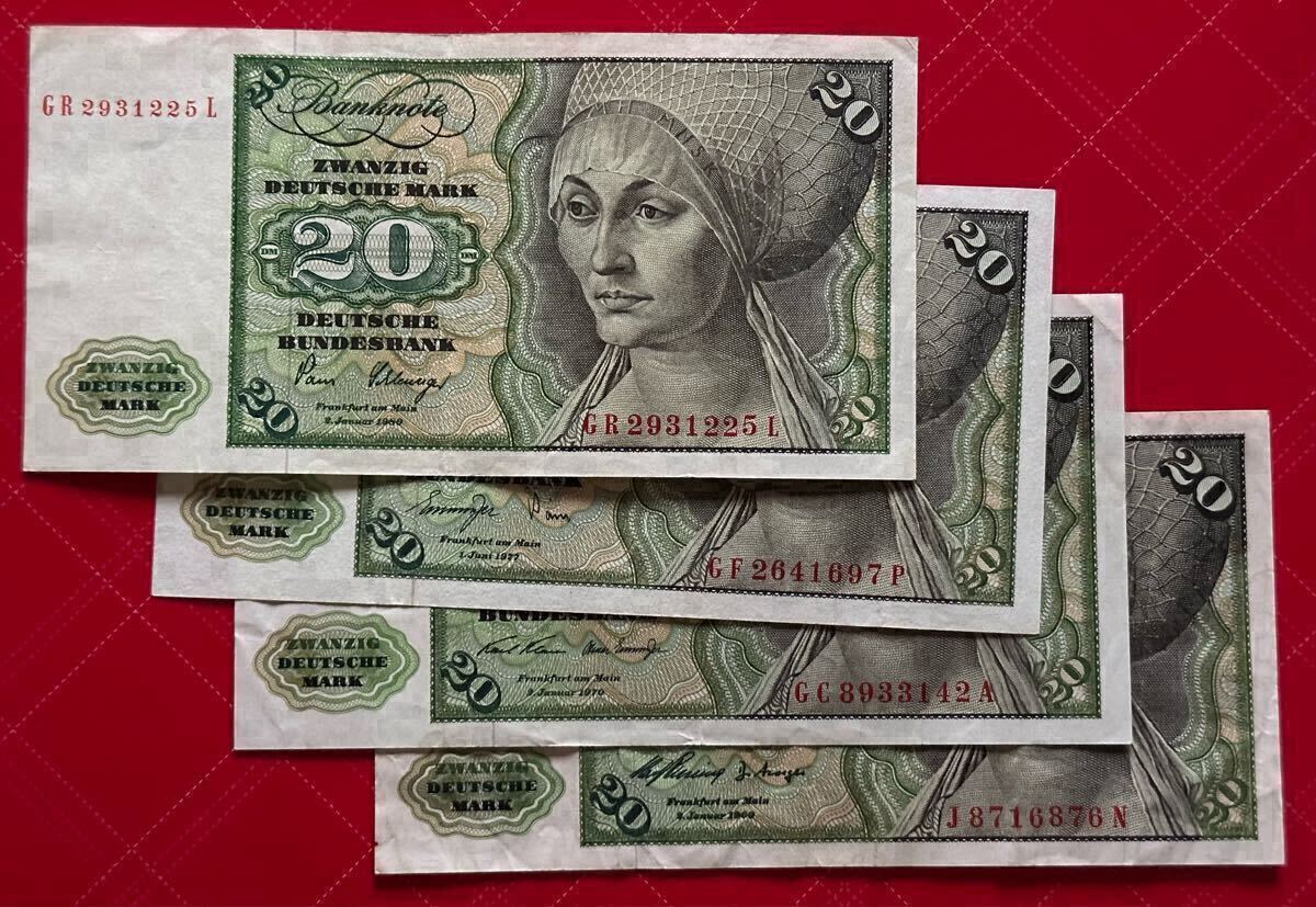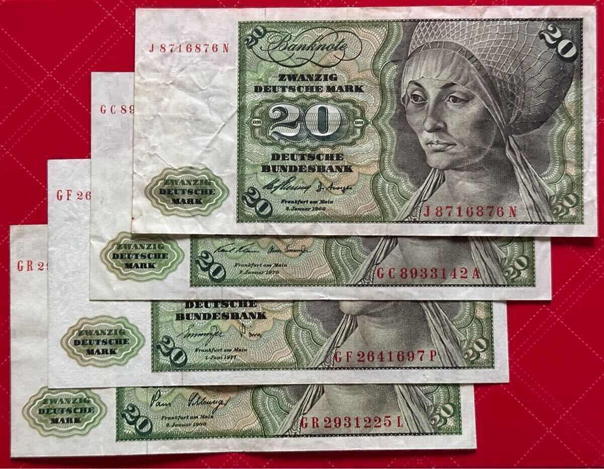 西ドイツ 4種 20マルク 1960 70 77 80年 紙幣 旧札(検索 外国 世界 札 古銭 ヨーロッパ 欧州 ユーロ ドイツ ベルリン ドル