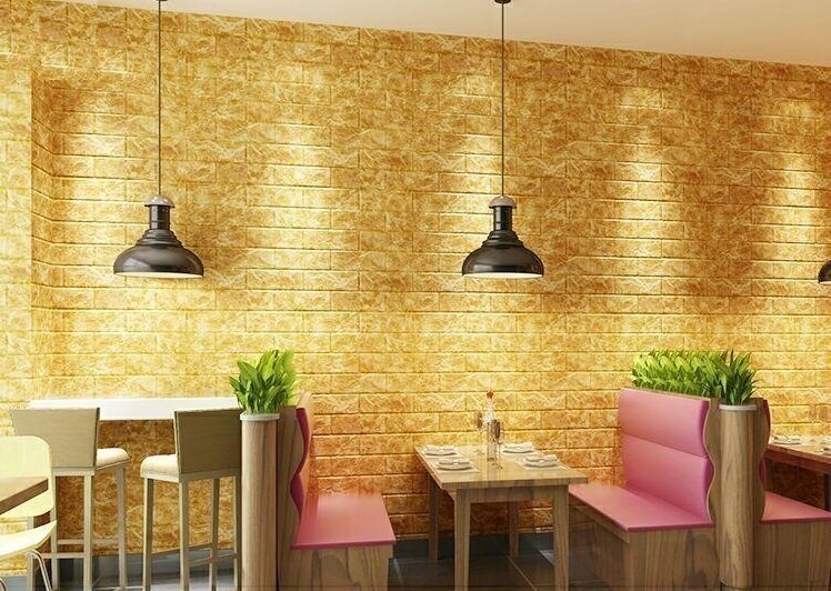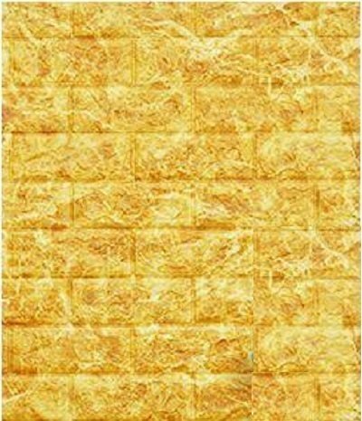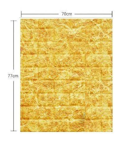 【50枚】高品質 3D クッション 壁 シール 大理石×黄色マーブル レンガ調 糊付き リメイク 70×77cm 耐水 抗菌 傷防止