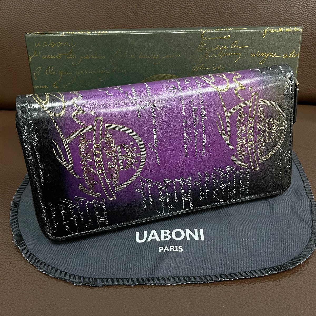 高級 定価23万 特注限定品◆UABONI*ユアボニ*幻のパティーヌ*ラウンドファスナー長財布*EU製◆カリグラフィー ゴールデン シルバー 手染 本革