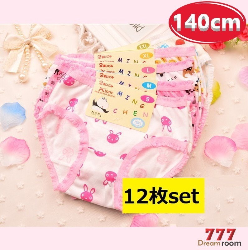 1スタ☆たっぷり12枚☆フリルレースが可愛い!子供用 ショーツ12点set 【140cm】 パンツ 女の子 下着 ギフト プレゼント K-285