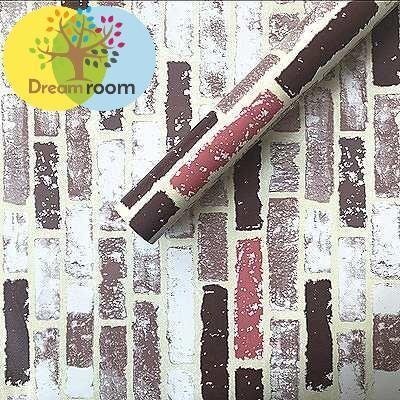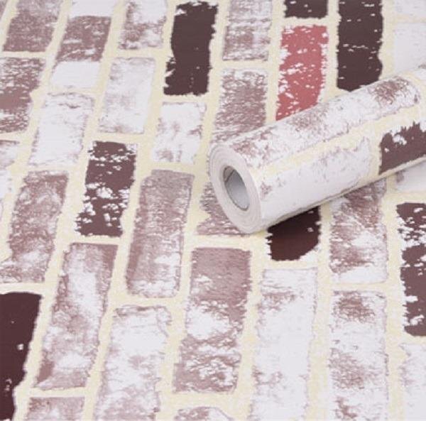 送料込 3Dブリック調 レンガ B131 レトロベージュMIX 10m ストーン 壁紙 北欧 インテリア はがせるシール DIY ウォールペーパー 糊付き