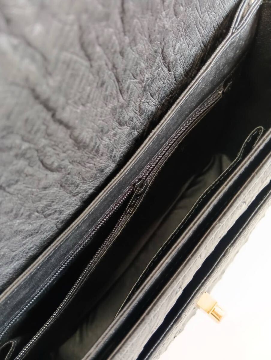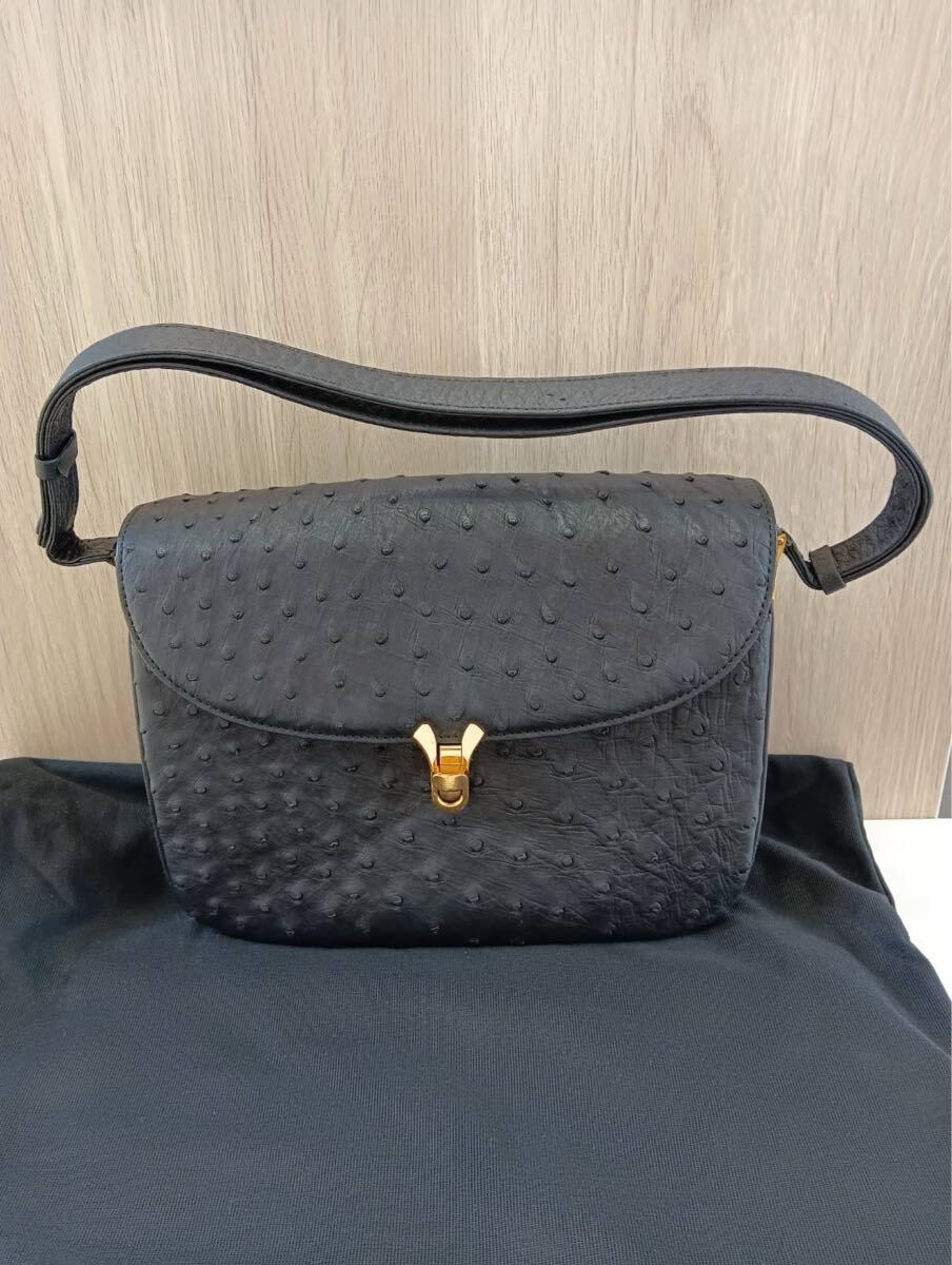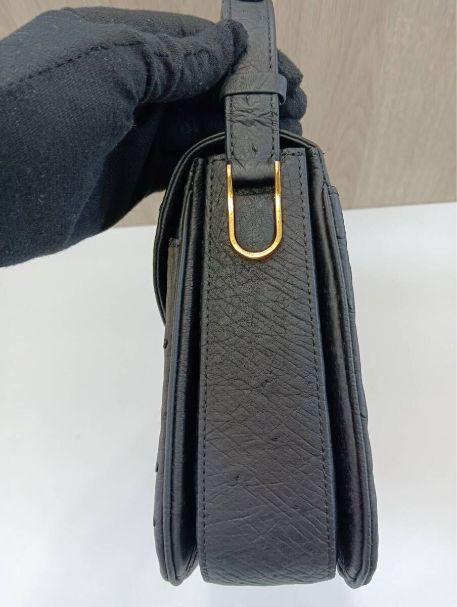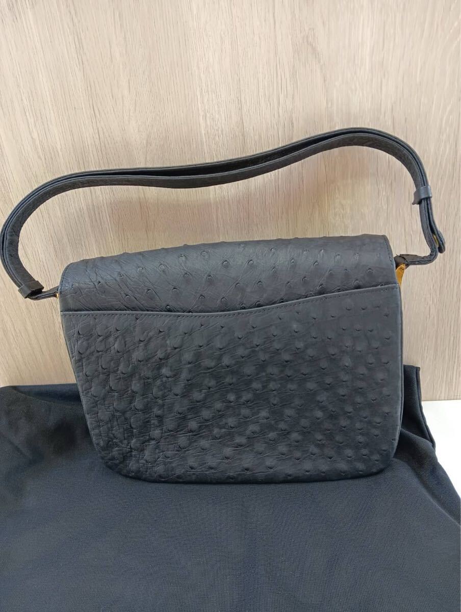 オーストリッチ ショルダーバッグ 黒ブラック 肩掛け バッグかばん 保存袋付き 現状品