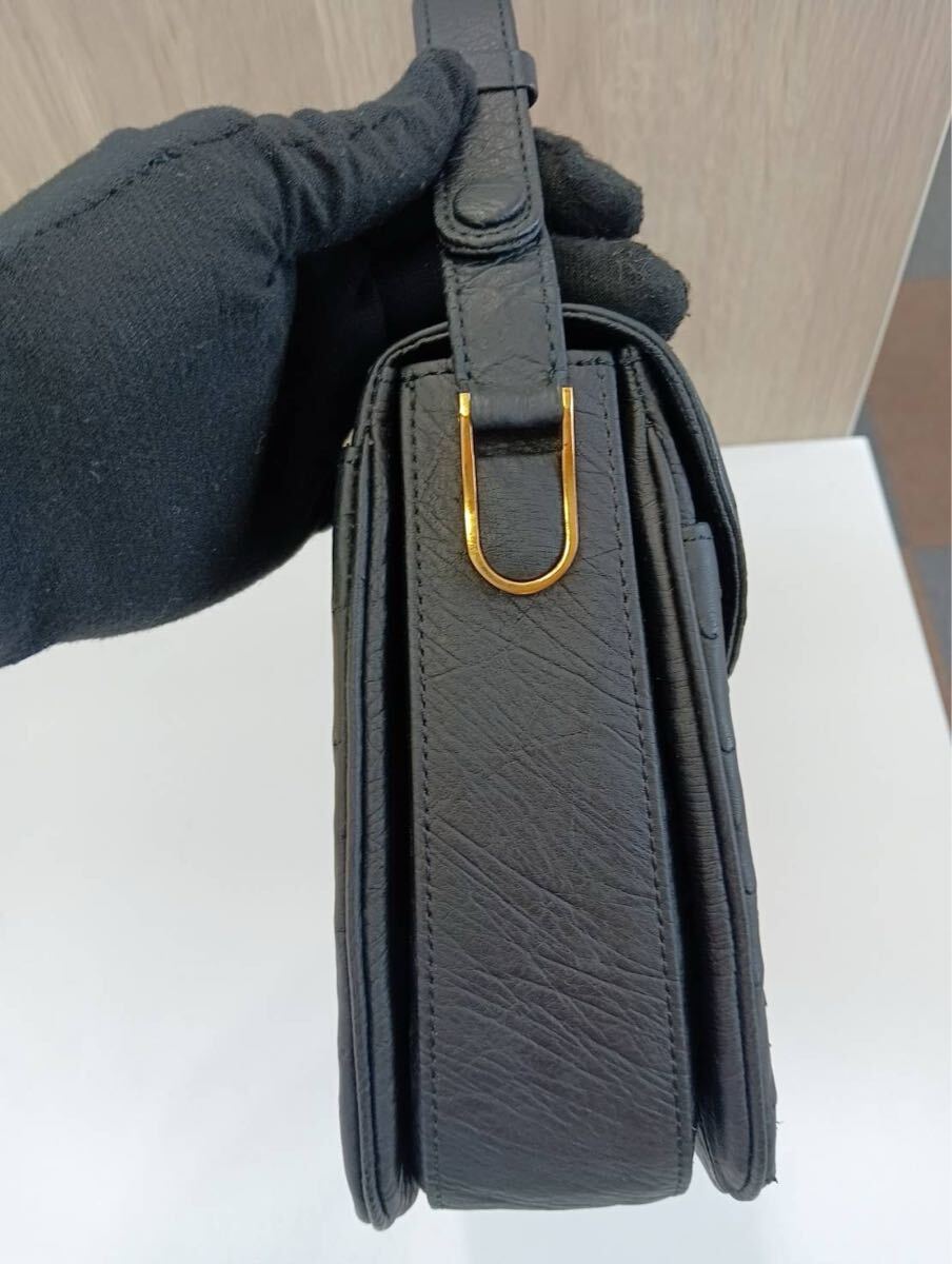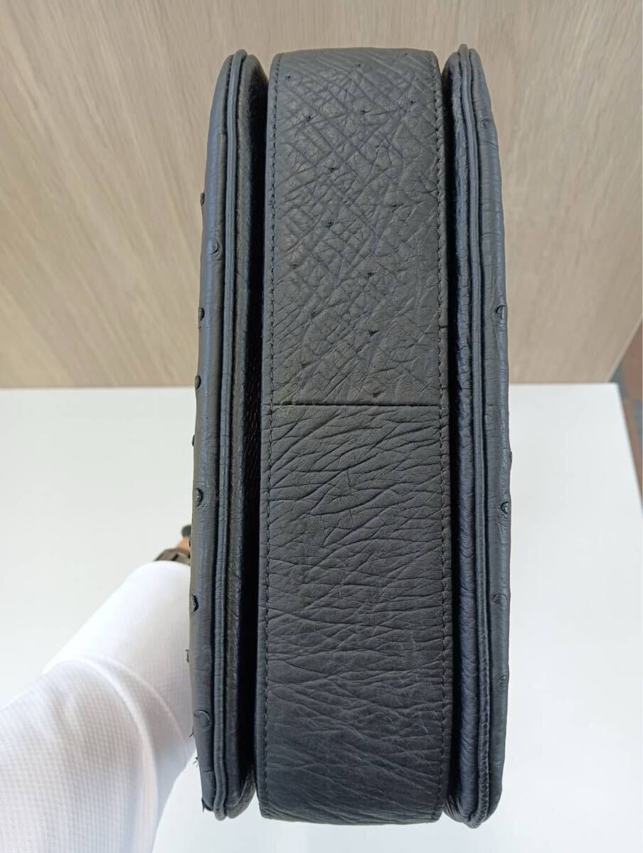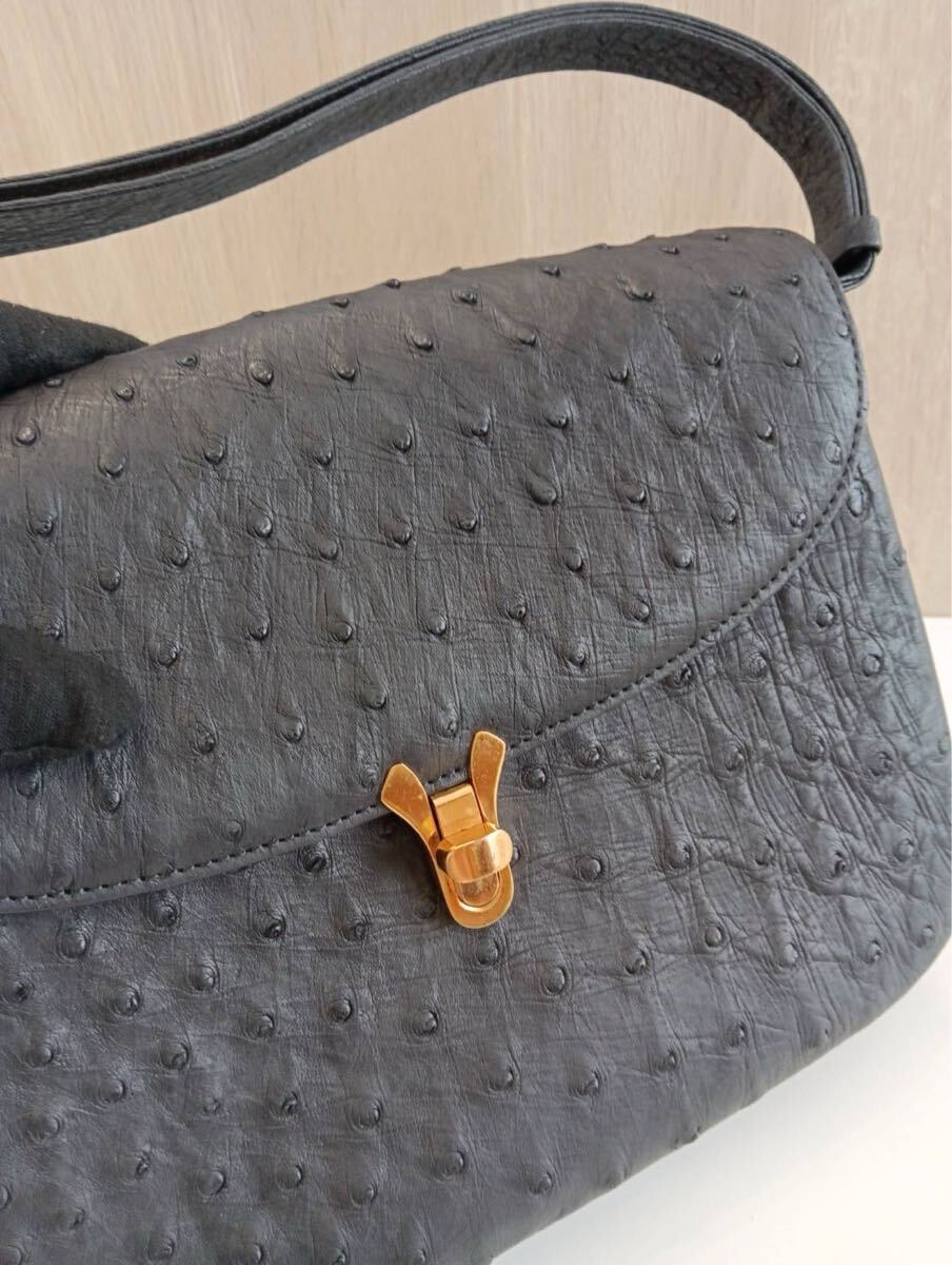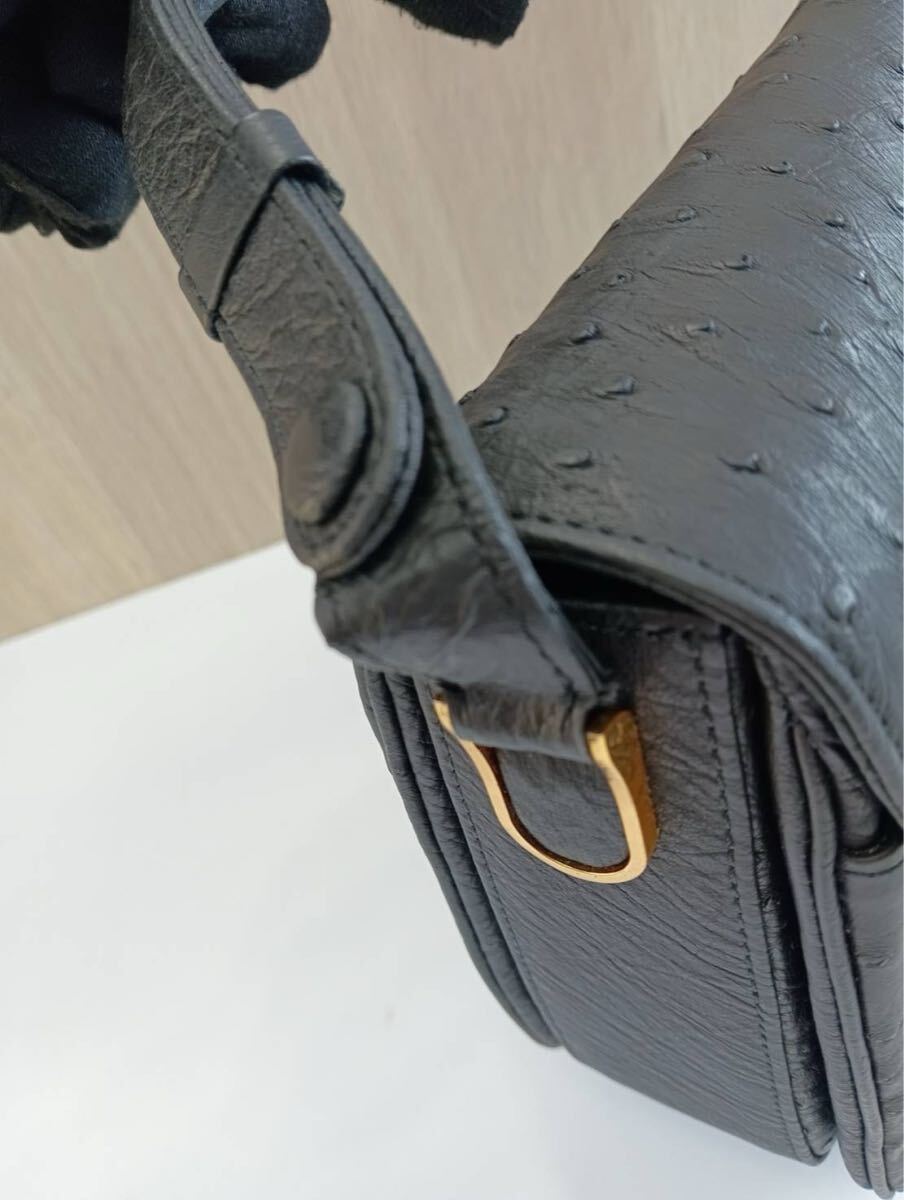 オーストリッチ ショルダーバッグ 黒ブラック 肩掛け バッグかばん 保存袋付き 現状品