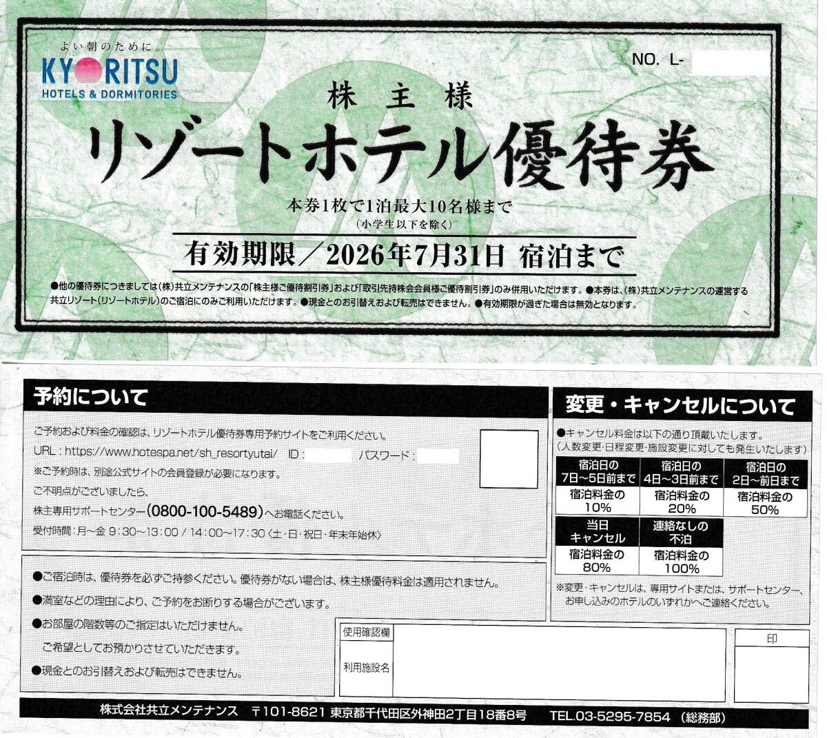 ★☆共立メンテナンス株主優待 リゾートホテル優待券1枚☆★ | |
