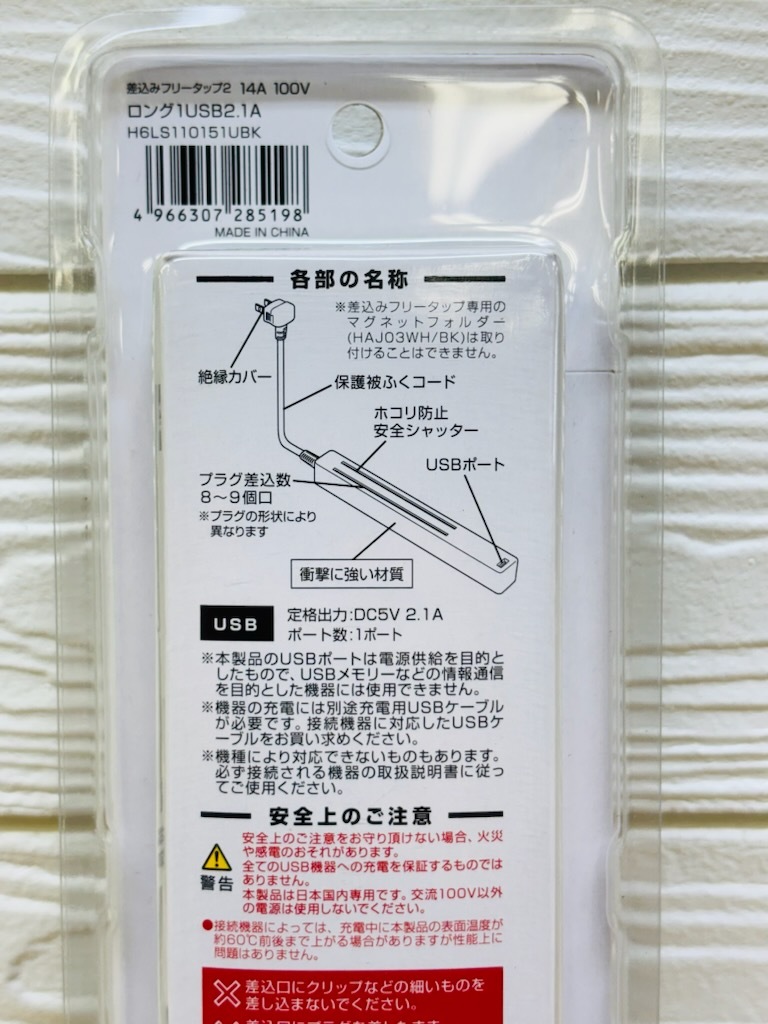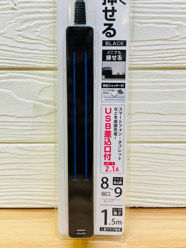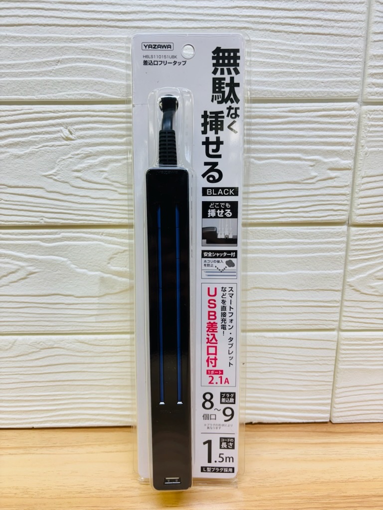 ヤザワ H6LS110151UBK [差込みフリータップ ロング 1USB 2.1A ブラック 1.5m]★