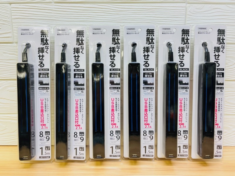 A850 YAZAWA 6本set スマホの充電コードが直接挿せる 急速充電2.1A USB 1ポート付 差込口フリータップ ブラック 8~9個口 1.5m H6LS110151