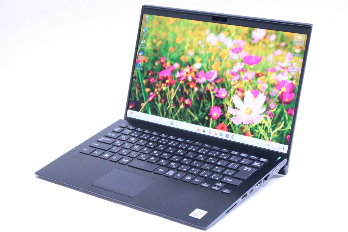 【メーカー】SONY・VAIO ノートパソコン 【型番/品名】VAIO Pro PK VJPK13C11N 【CPU】Core i5-1035G1 1.00GHz / 4コア8スレッド / ターボ・ブースト2.0最大3.60GHz 【メモリ】8GB 【ストレージ】NVMe SSD 256GB 【ディスプレイ】14.0インチ FHD 解像度 1920x1080 ※カテゴリ--14.0~14.9インチ 【グラフィック】Intel(R)内蔵グラフィックス 【光学ドライブ】-- 【サウンド】ステレオスピーカー内蔵、インテル High Definition Audio準拠 【セキュリティーチップ(TPM)】搭載 (TCG ver.2.0準拠) 【Webカメラ】搭載 【キーボード】バックライトキーボード 【無線LAN】Wi-Fi 6(IEEE802.11ax)対応 【その他装備】Bluetooth (※その他インターフェースは画像とメーカーページ等でご確認ください。) 【OS】Windows11Pro-64bit 【Officeソフト】アプリ無し(Microsoft Web版Officeご利用可) 【ウイルス対策】Windows Defender、Windowsファイアウォール 【寸法/質量】幅:320.4mm/高さ:15.0~17.9mm/奥行:222.7mm/重量:約999~1018g(仕様・構成により変動する場合あり) 【付属品】ACアダプタ 【メーカーページ】(スペック完全一致でない場合あり) https://vaio.com/business/pk13/specification.html 【取扱説明書】(機種・型番完全一致でない場合あり) https://support.vaio.com/products/VJPK13/