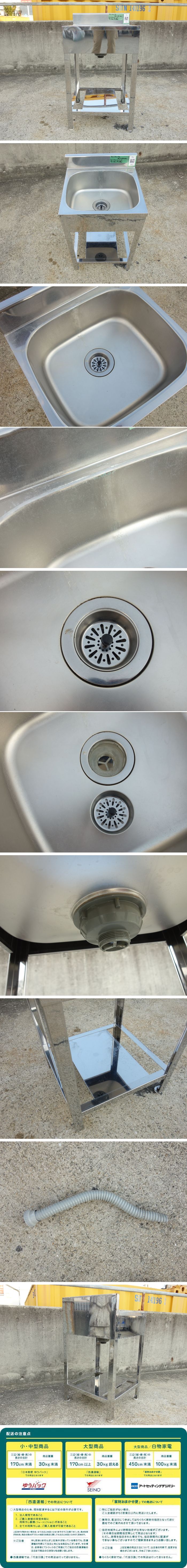【中古】K▼業務用 厨房 流し台 シンク ステンレス 一槽 1槽 バックガード 幅450×奥行430×高さ700~790 (Fe1953)