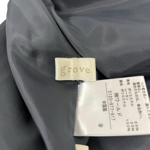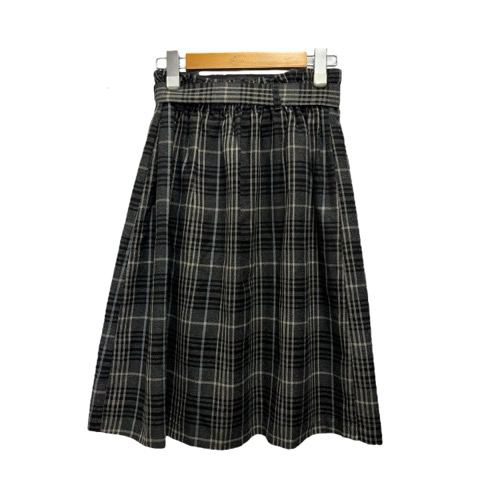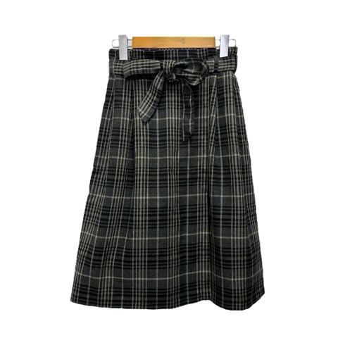 グローブ grove スカート 巻きスカート フレアー ひざ丈 チェック 総柄 M グレー マルチカラー レディース