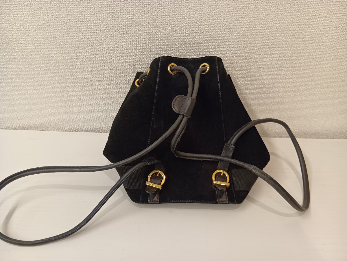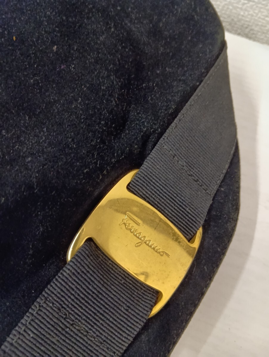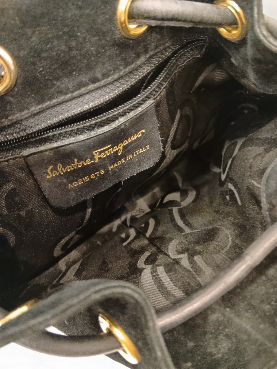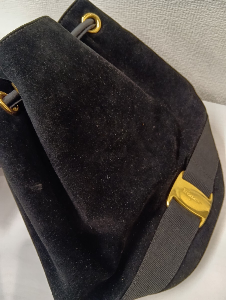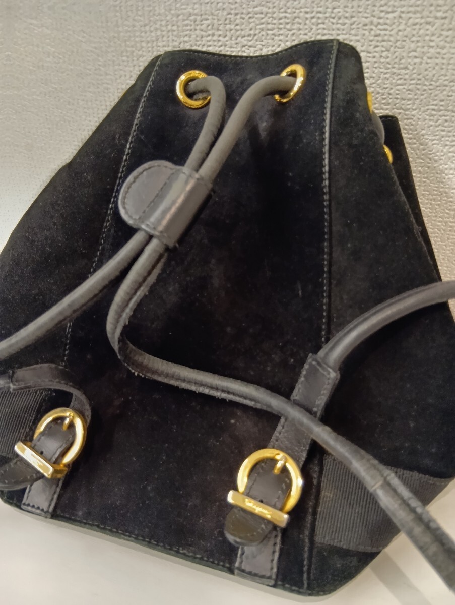 Salvatore Ferragamo フェラガモ ヴァラリボン キャンバス 巾着型 ミニリュック バックパック ブラック系 中古品 現状品