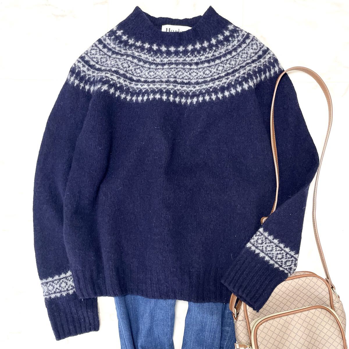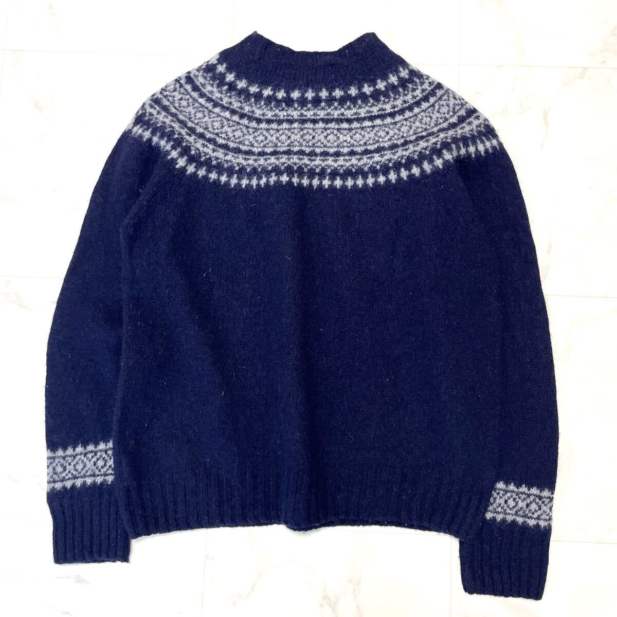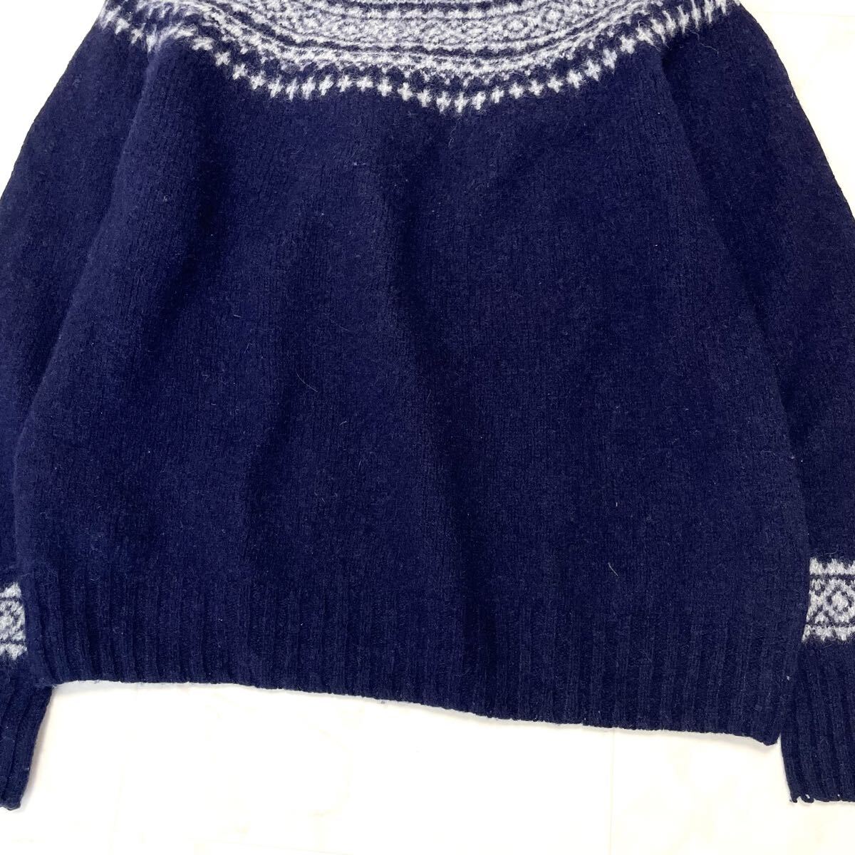 ジャガード クルーネック シェットランドウール ニットプルオーバー
