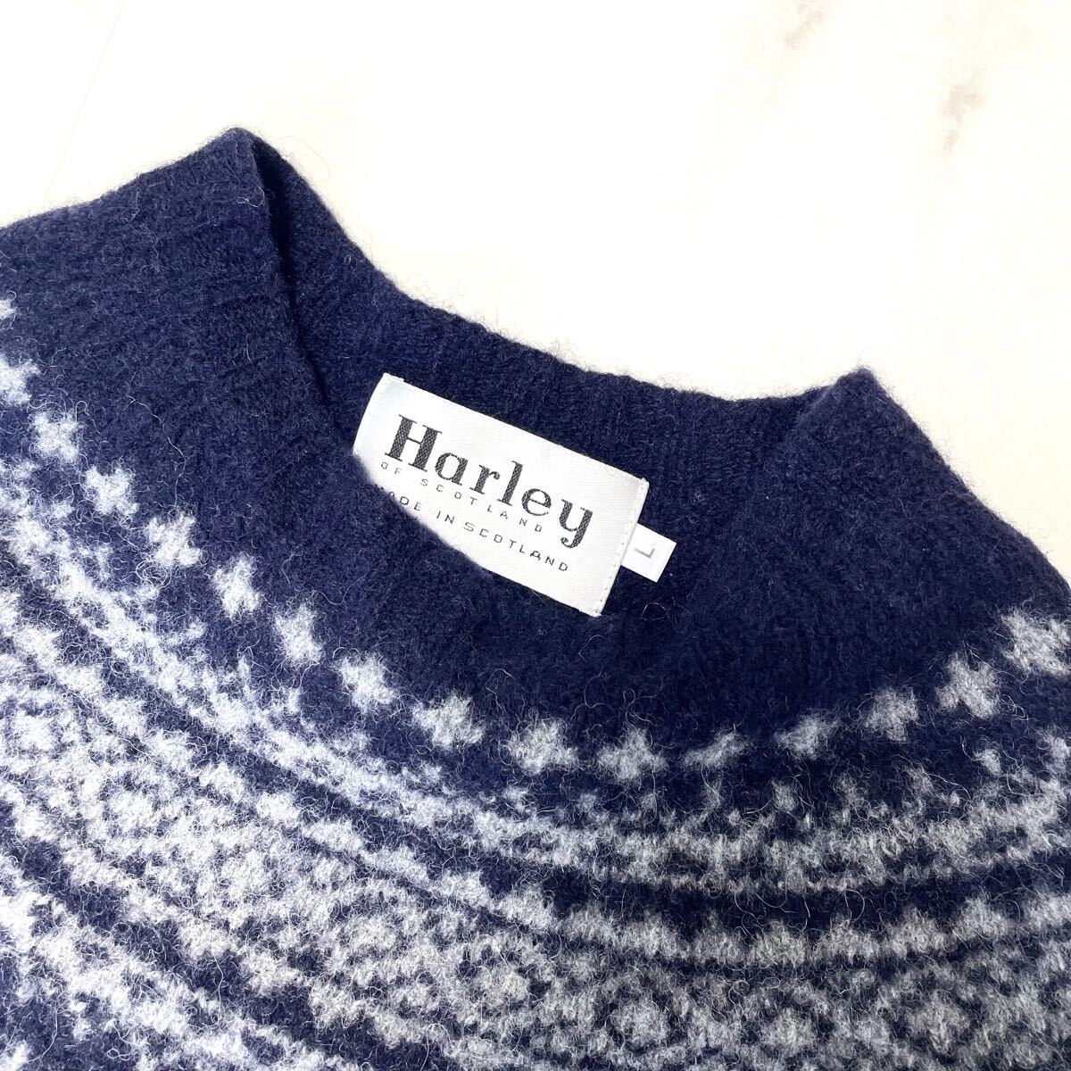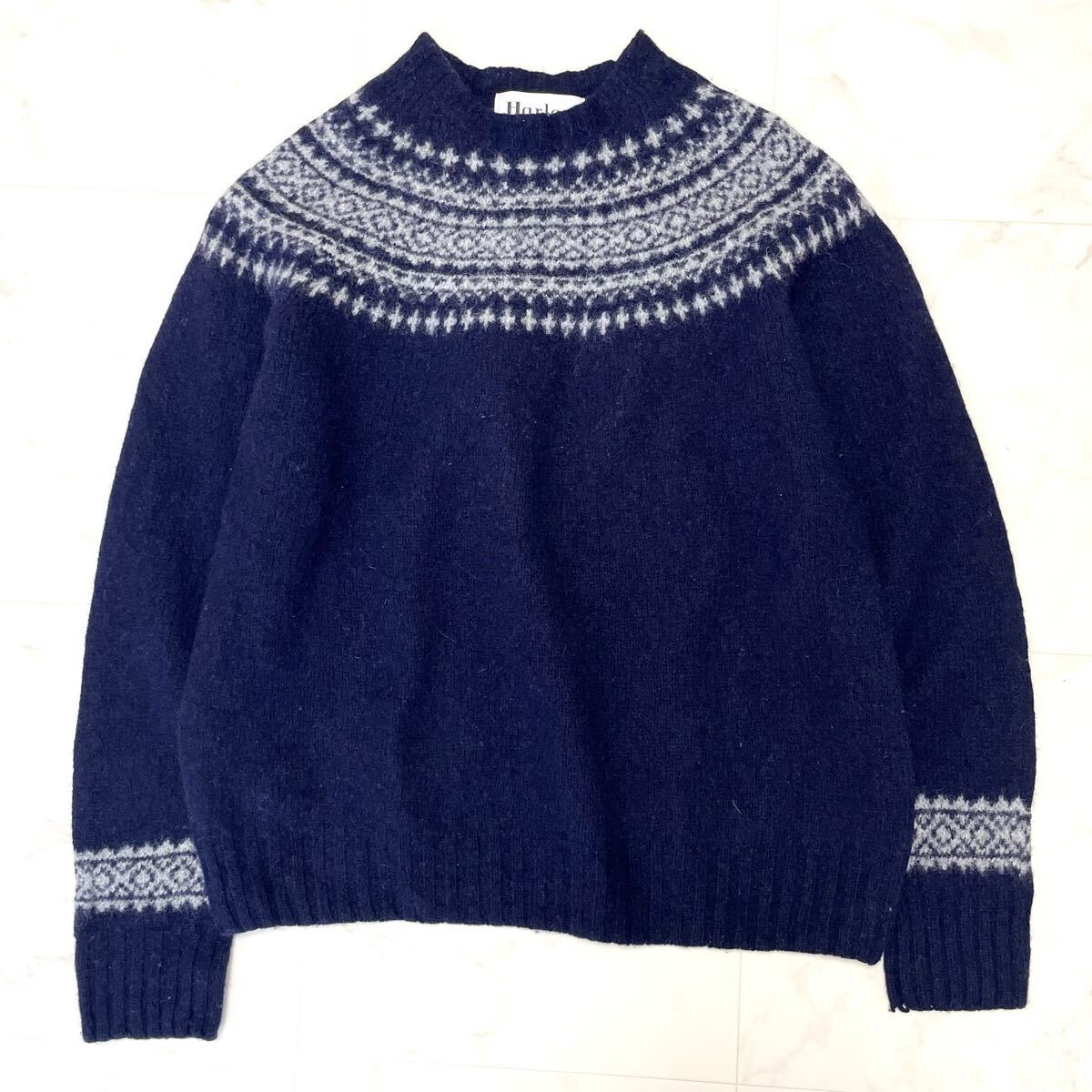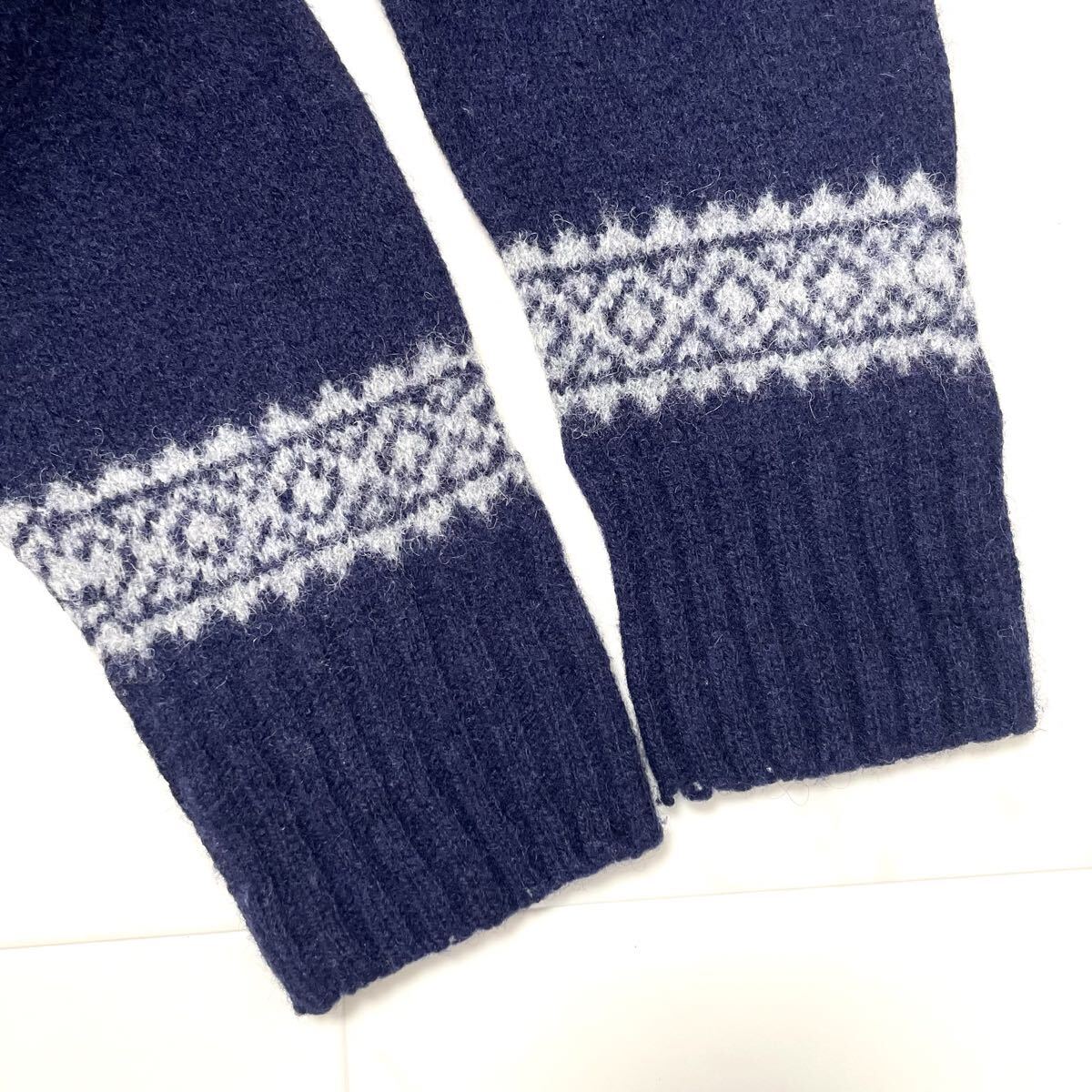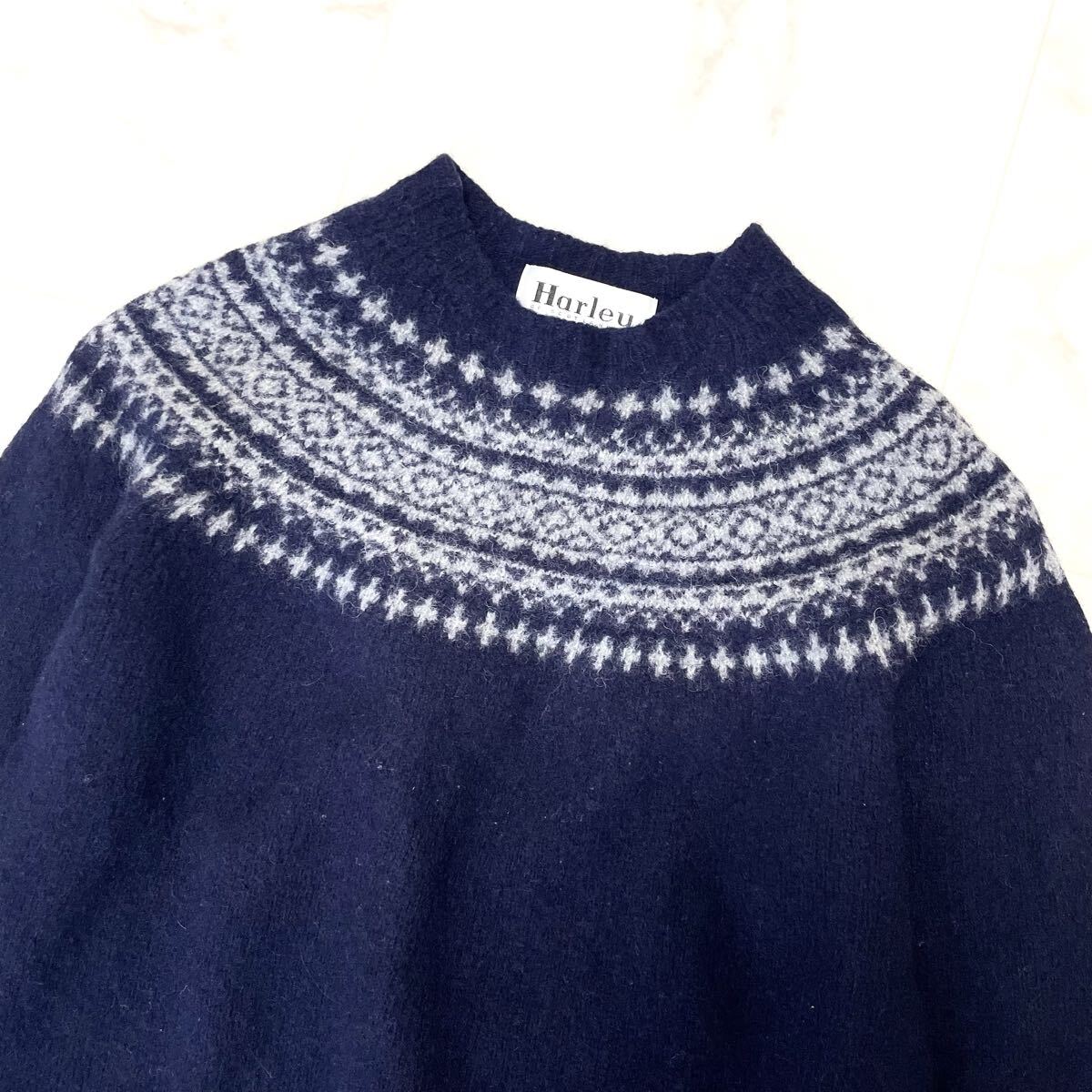 ジャガード クルーネック シェットランドウール ニットプルオーバー