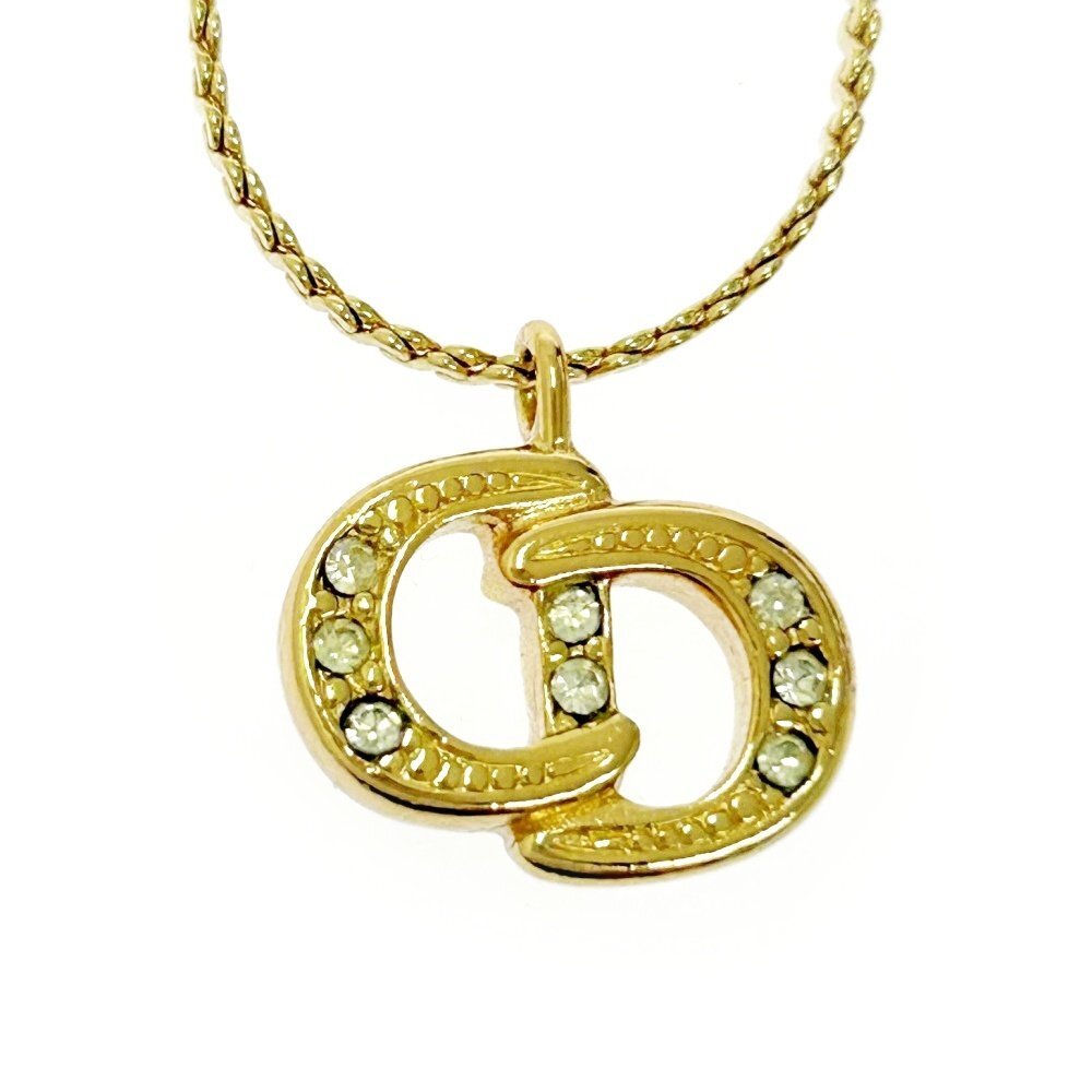 【1円スタート】Christian Dior クリスチャンディオール GP ラインストーン CDロゴ ゴールド ネックレス 498413
