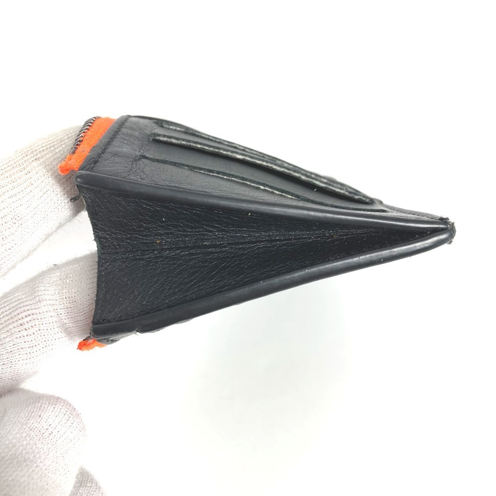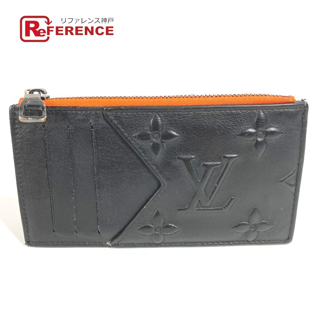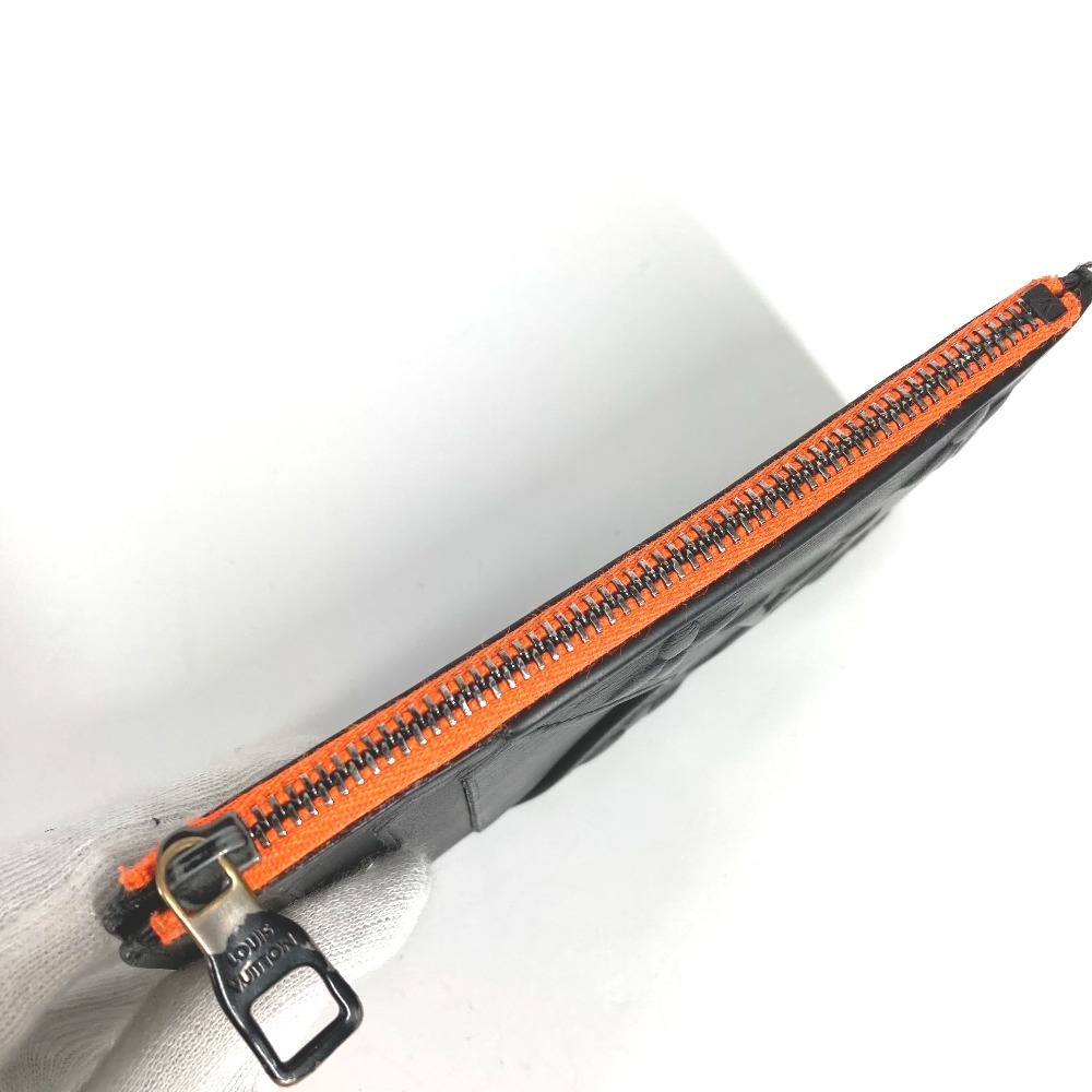 商品説明モノグラム・パターンをデボス加工したブラックレザーで仕立て、ネオンオレンジのディテールを添えた「コインカードホルダー」。