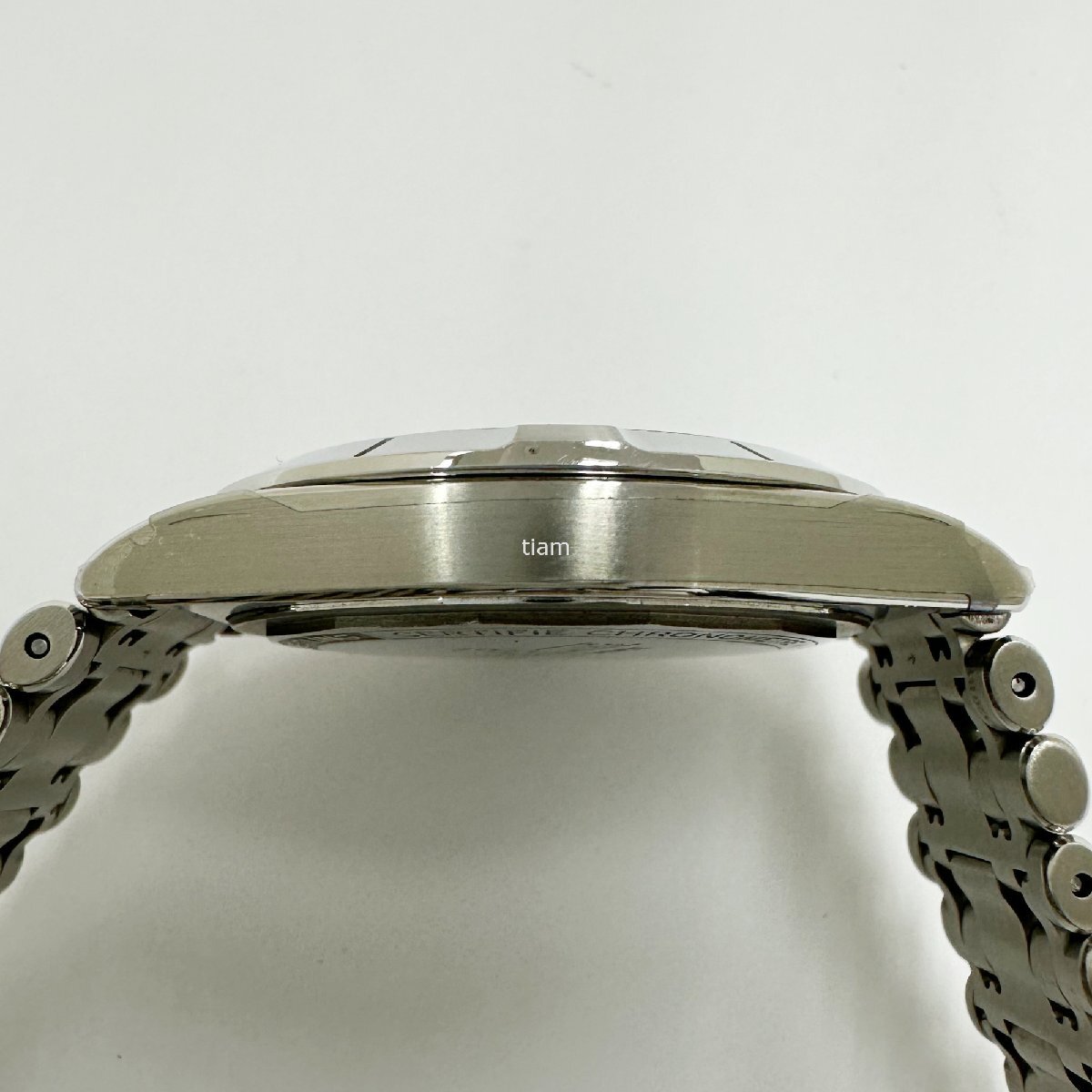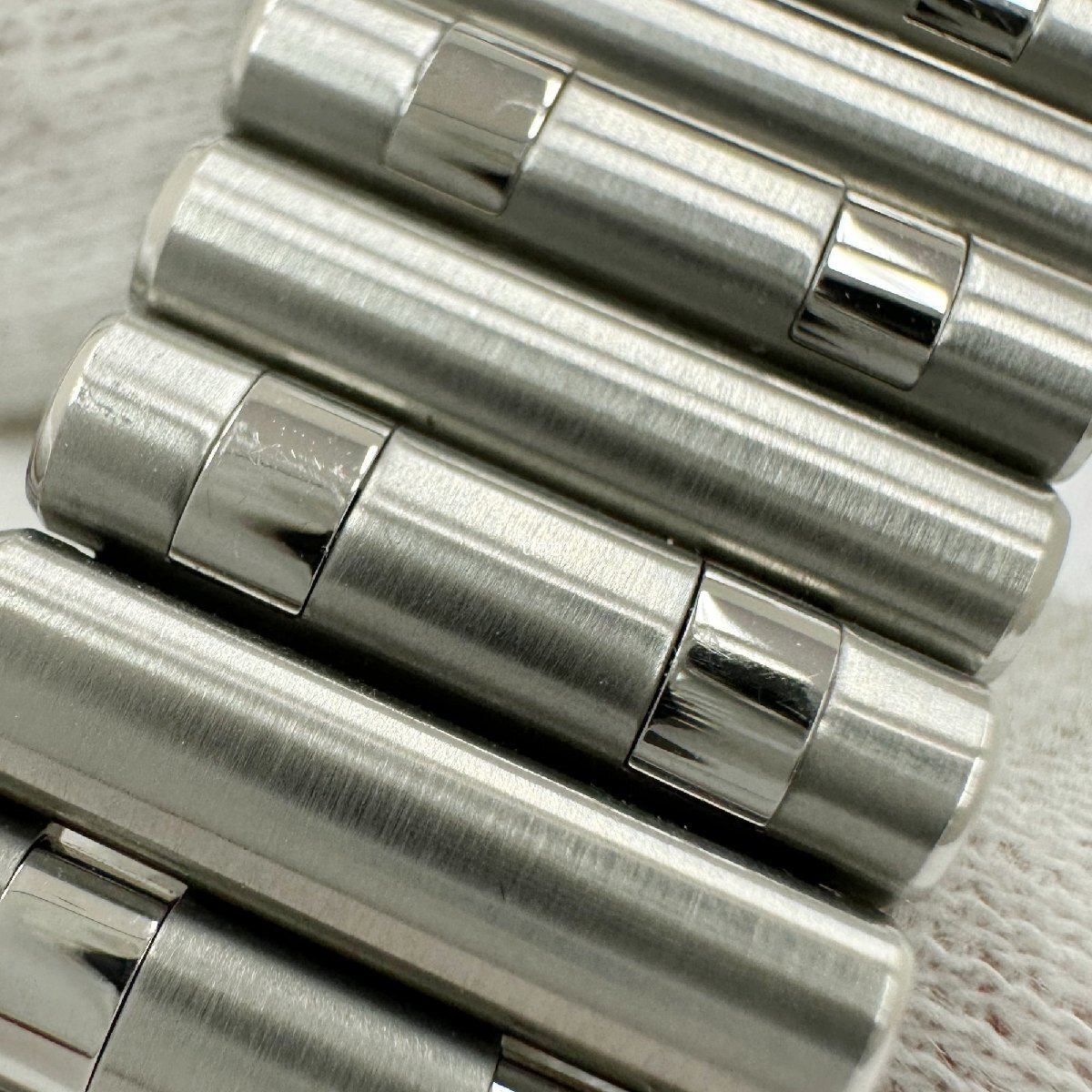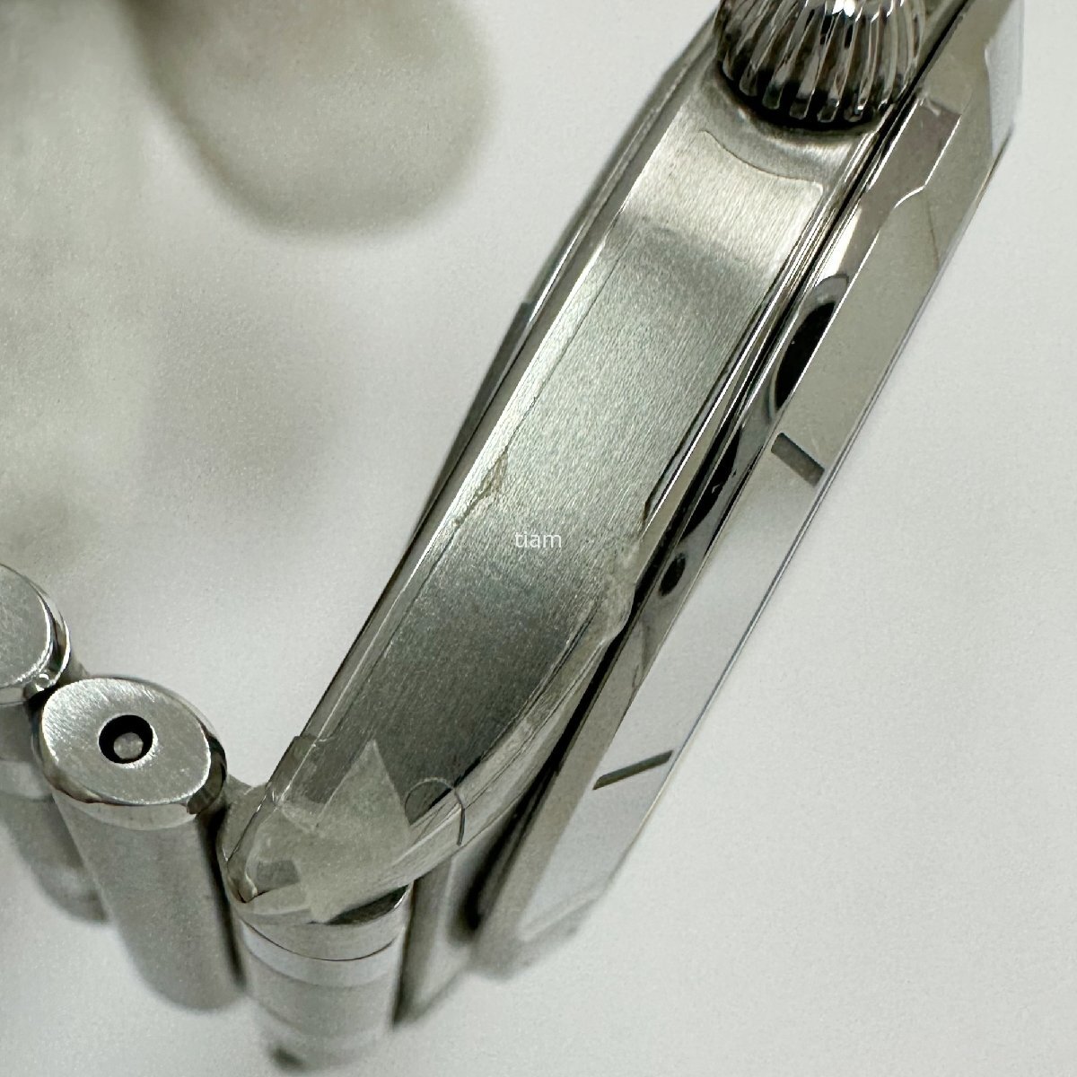 ガラス: 目立つ傷はございません。 ダイヤル/針: 目立つ傷はございません。 ケース/ベゼル: 保護シール残っている箇所がございます。 裏蓋に薄い小傷がございます。 ブレス: 目立つ傷はございません。 その他: | ||