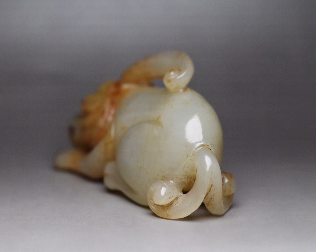 【超珍館蔵】和田玉製 細密彫 玉獣 置物 賞物 古賞物 古董品 古美術品 時代物 旧家蔵出 稀少珍蔵品