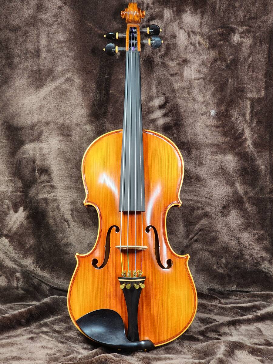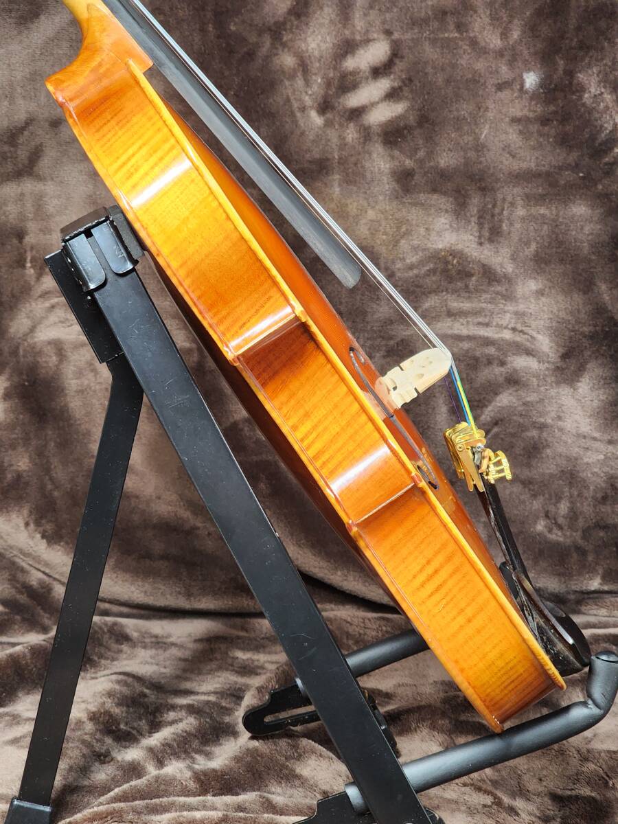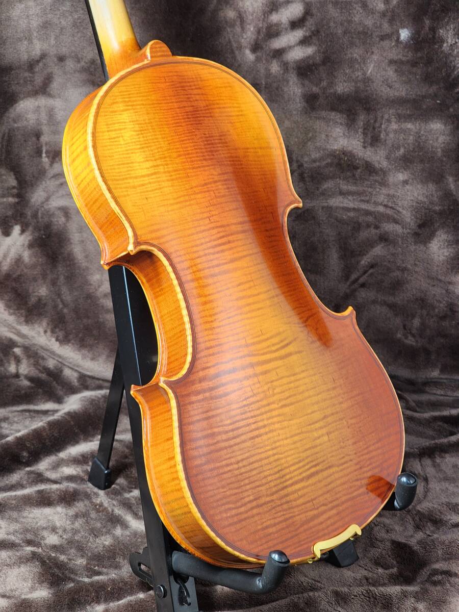 杢のあるメイプル材を使用した、裏板一枚仕上げの贅沢なバイオリンです