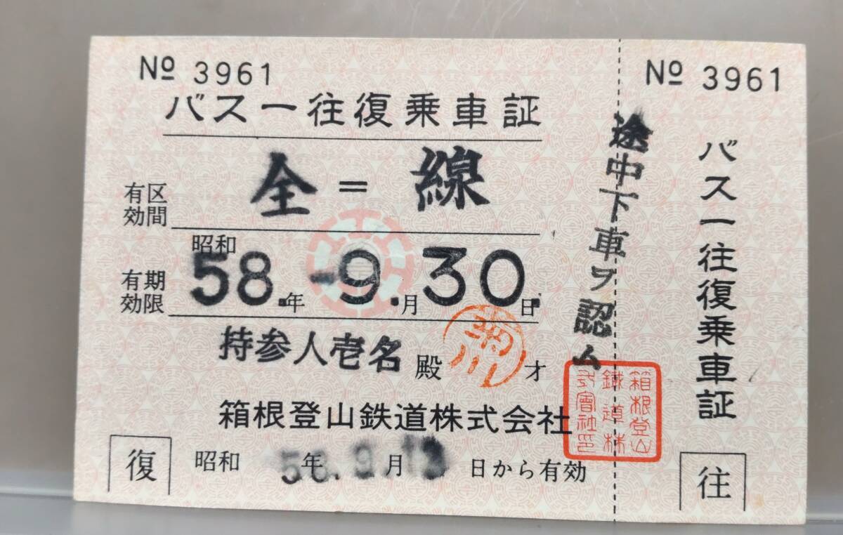 SS1361  ◆特集・箱根登山鉄道・第10弾◆ バス一往復乗車証 【 ①昭58 全線 】