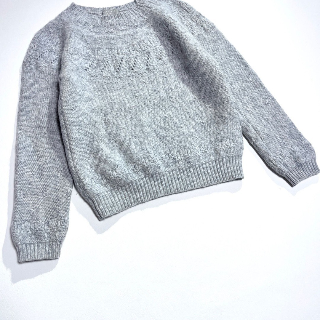ノルディック クルーネック セーター ニット ケーブルニット 長袖 ウール 毛 ブリティッシュメリノウール 丸ヨーク レース模様編み ニット